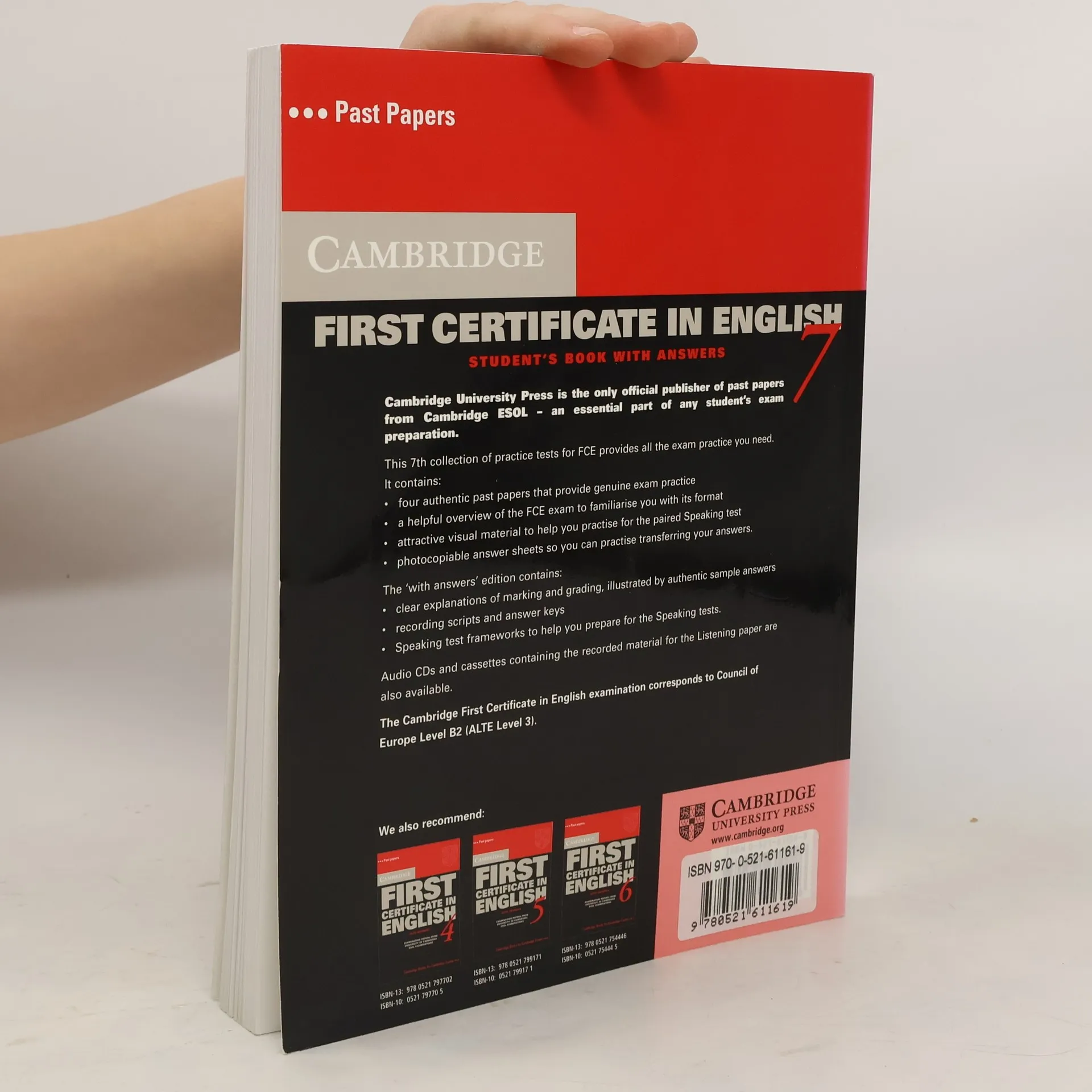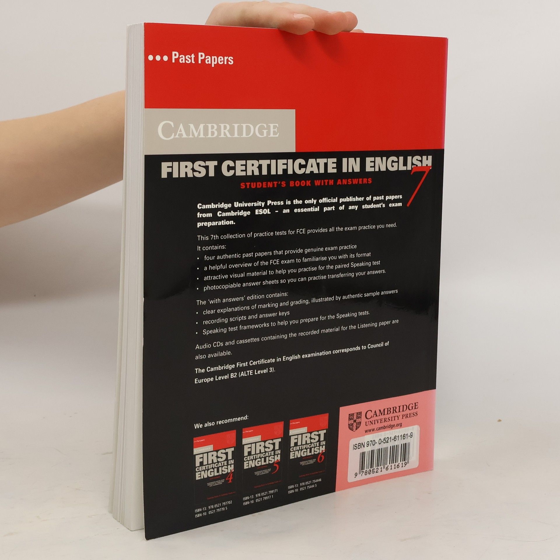 Contains four complete tests for the First Certificate exam from Cambridge ESOL. These past examination papers provide the most authentic exam preparation available, allowing candidates to familiarise themselves with the content of the exam and to practise exam techniques. Colour visual material for Paper 5 is included with each test. The Student's Book is also available as a with answers edition, suitable for self study.