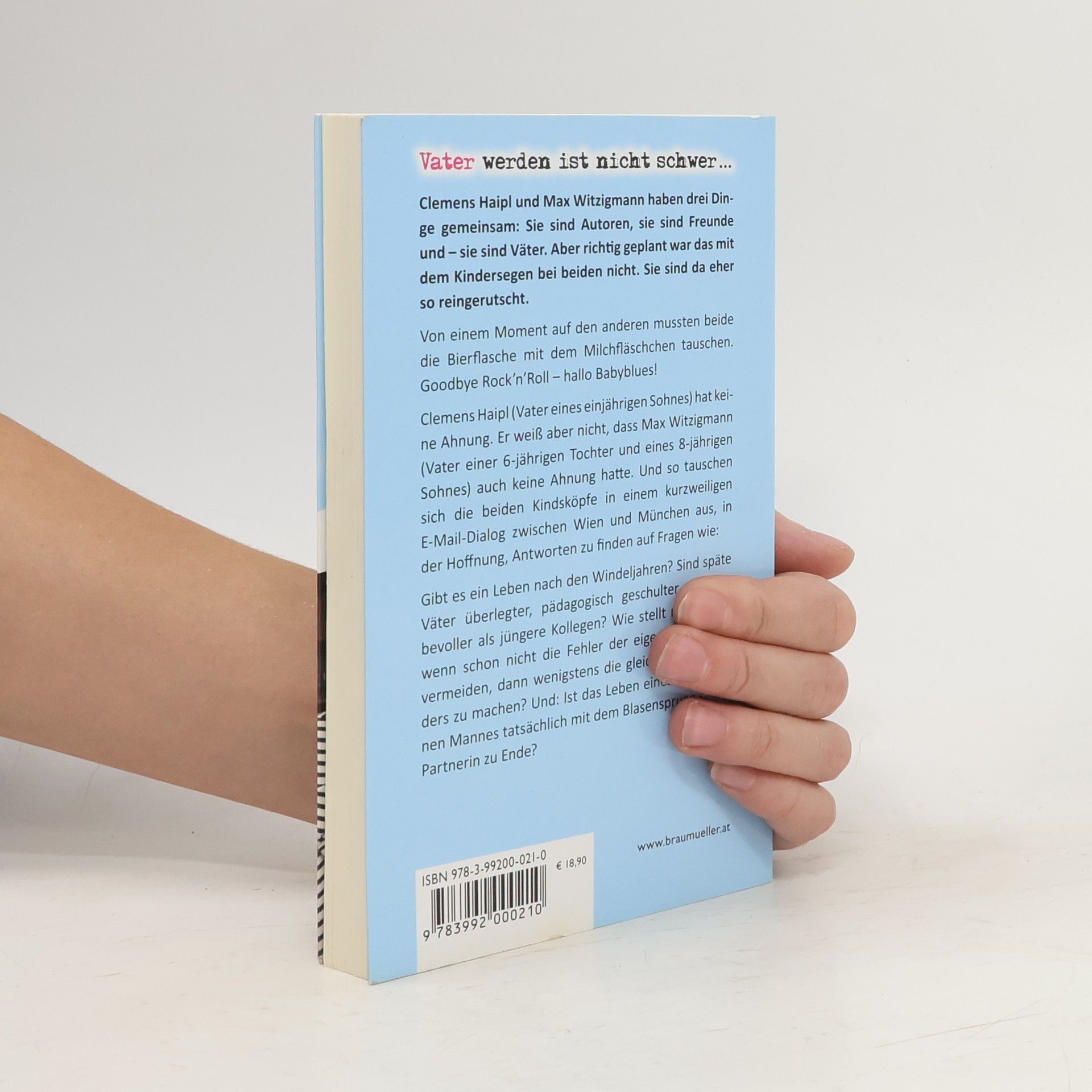 Clemens Haipl und Max Witzigmann haben drei Dinge gemeinsam: Sie sind Autoren, sie sind Freunde und - sie sind Väter. Aber richtig geplant war das mit dem Kindersegen bei beiden nicht. Sie sind da eher so reingerutscht. Von einem Moment auf den anderen mussten beide die Bierflasche mit dem Milchfläschchen tauschen. Goodbye RocknRoll - hallo Babyblues! Clemens Haipl (Vater eines einjährigen Sohnes) hat keine Ahnung. Er weiß aber nicht, dass Max Witzigmann (Vater einer 6-jährigen Tochter und eines 8-jährigen Sohnes) auch keine Ahnung hatte. Und so tauschen sich die beiden Kindsköpfe in einem kurzweiligen E-Mail-Dialog zwischen Wien und München aus, in der Hoffnung, Antworten zu finden auf Fragen wie: Gibt es ein Leben nach den Windeljahren? Sind späte Väter überlegter, pädagogisch geschulter und liebevoller als jüngere Kollegen? Wie stellt man es an, wenn schon nicht die Fehler der eigenen Eltern zu vermeiden, dann wenigstens die gleichen Fehler anders zu machen? Und: Ist das Leben eines erwachsenen Mannes tatsächlich mit dem Blasensprung seiner Partnerin zu Ende?