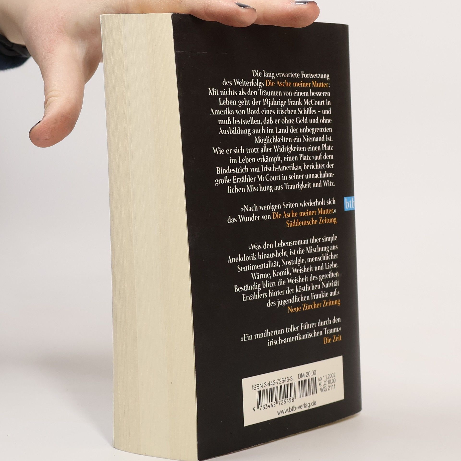 „‘Die Asche meiner Mutter‘ ist so gut – sie verdient eine Fortsetzung.“ So schrieb die New York Times über Frank McCourts Bestseller. Mit dem vorliegenden Buch erfüllte der Autor nicht nur den Wunsch seines Rezensenten, sondern auch die Hoffnungen der Millionen von begeisterten Lesern und schrieb seine Geschichte fort. „Ein rundherum tolles Land“ beginnt dort, wo der erste Teil endet: als Frank McCourt mit 19 Jahren an Bord eines irischen Schiffes nach Amerika kommt und nichts hat als die Hoffnung auf eine bessere Zukunft. Arm, mit schlechten Zähnen und entzündeten Augen, ohne jede nennenswerte Ausbildung, erreicht er das Land seiner Träume – und muss feststellen, dass er mit seinem Aussehen und seinem irischen Akzent ein Nichts ist. Wie er sich trotz aller Widrigkeiten einen Platz im Leben erkämpft, einen Platz „auf dem Bindestrich von Irisch-Amerika“, berichtet der große Erzähler McCourt in seiner unnachahmlichen Mischung aus Traurigkeit und Witz. Seine unglaublichen Geschichten über Priester und Jungfrauen, über irische Kneipen, bayrische Bierkeller und die merkwürdigen Sitten der Amerikaner im Allgemeinen verbinden sich zu einer augenzwinkernden Hommage an das Land der unbegrenzten Möglichkeiten, in der „toll“ nicht nur „großartig“ bedeutet.