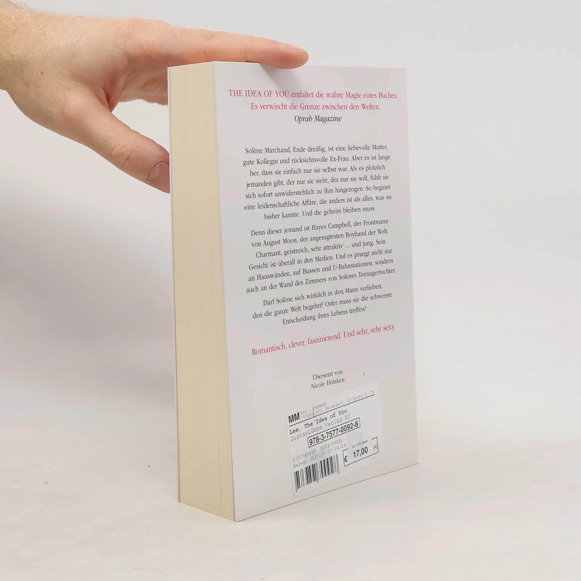 The Idea of you entfaltet die wahre Magie eines Buches: Es verwischt die Grenze zwischen den Welten. Oprah Magazine Solène Marchand, Ende dreißig, ist eine liebevolle Mutter, gute Kollegin und rücksichtsvolle Ex-Frau. Aber es ist lange her, dass sie einfach nur sie selbst war. Als es plötzlich jemanden gibt, der nur sie sieht, der nur sie will, fühlt sie sich sofort unwiderstehlich zu ihm hingezogen. So beginnt eine leidenschaftliche Affäre, die anders ist als alles, was sie bisher kannte. Und die geheim bleiben muss. Denn dieser jemand ist Hayes Campbell, der Frontmann von August Moon, der angesagtesten Boyband der Welt. Charmant, geistreich, sehr attraktiv ... und jung. Sein Gesicht ist überall in den Medien. Und es prangt nicht nur an Hauswänden, auf Bussen und U-Bahnstationen, sondern auch an der Wand des Zimmers von Solènes Teenagertochter. Darf Solène sich wirklich in den Mann verlieben, den die ganze Welt begehrt? Oder muss sie die schwerste Entscheidung ihres Lebens treffen? Romantisch, clever, faszinierend. Und sehr, sehr sexy.
