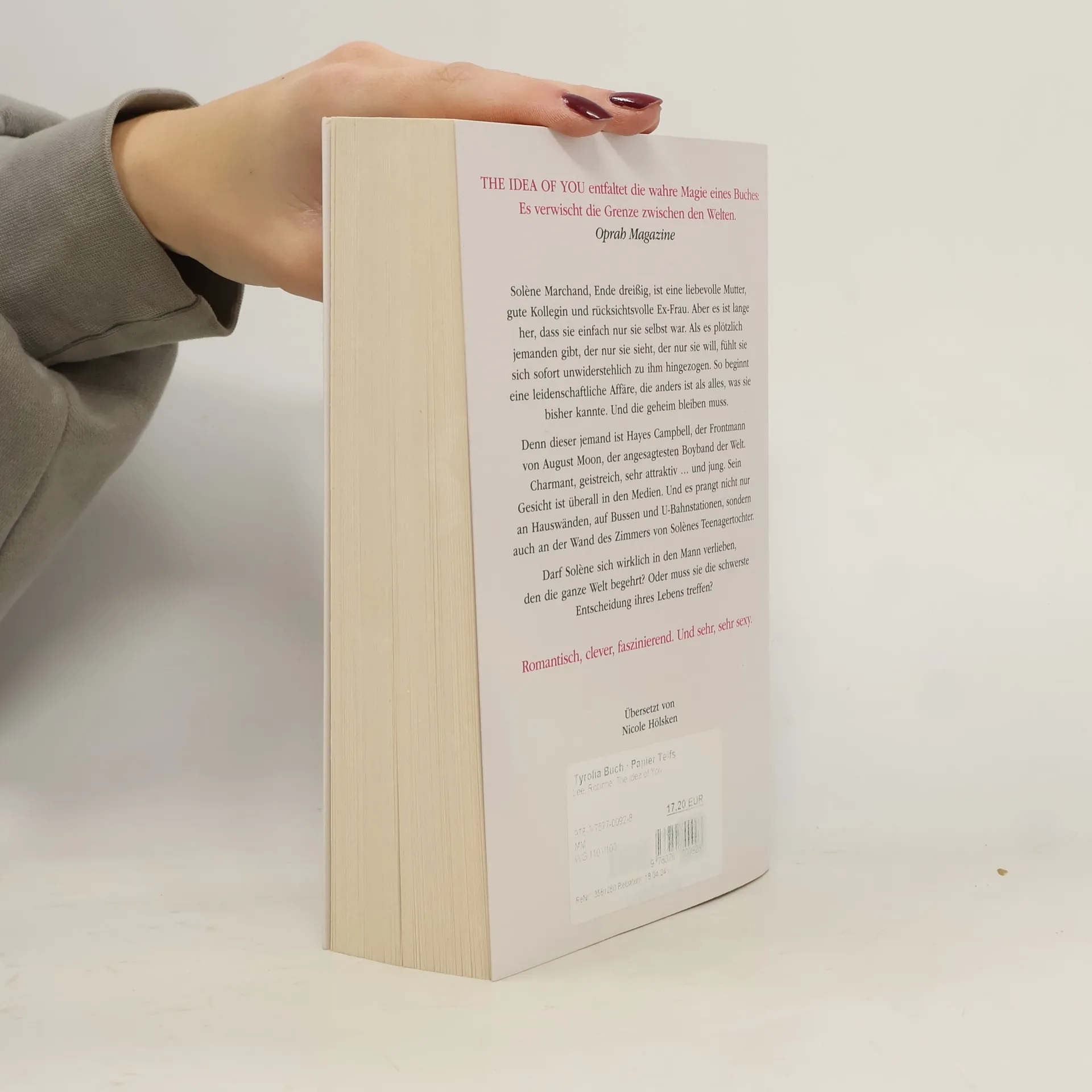 The Idea of you entfaltet die wahre Magie eines Buches: Es verwischt die Grenze zwischen den Welten. Oprah Magazine Solène Marchand, Ende dreißig, ist eine liebevolle Mutter, gute Kollegin und rücksichtsvolle Ex-Frau. Aber es ist lange her, dass sie einfach nur sie selbst war. Als es plötzlich jemanden gibt, der nur sie sieht, der nur sie will, fühlt sie sich sofort unwiderstehlich zu ihm hingezogen. So beginnt eine leidenschaftliche Affäre, die anders ist als alles, was sie bisher kannte. Und die geheim bleiben muss. Denn dieser jemand ist Hayes Campbell, der Frontmann von August Moon, der angesagtesten Boyband der Welt. Charmant, geistreich, sehr attraktiv ... und jung. Sein Gesicht ist überall in den Medien. Und es prangt nicht nur an Hauswänden, auf Bussen und U-Bahnstationen, sondern auch an der Wand des Zimmers von Solènes Teenagertochter. Darf Solène sich wirklich in den Mann verlieben, den die ganze Welt begehrt? Oder muss sie die schwerste Entscheidung ihres Lebens treffen? Romantisch, clever, faszinierend. Und sehr, sehr sexy.