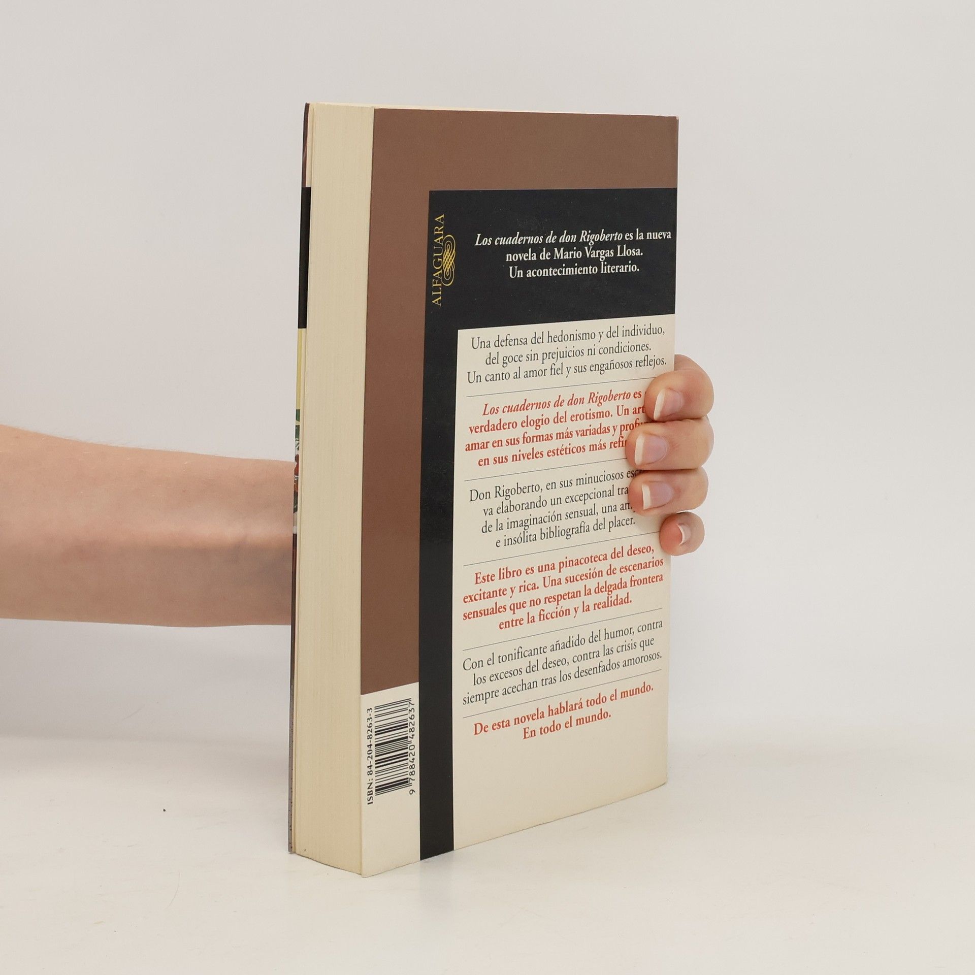 Don Rigoberto llena cuadernos con anotaciones, comentarios, diatribas y fantasías para defenderse de la banalidad. También para soportar la nostalgia que siente por su mujer, Lucrecia, de quien lleva unos meses separado por algo que sucedió entre ella y el hijo de don Rigoberto. Los cuadernos de don Rigoberto es mucho más que una novela erótica. Es también una novela sobre la realidad y el deseo, sobre cómo la vida de la imaginación puede compensar los estrechos gestos de la vida real. "Lo erótico es la dignificación del sexo a través de la fantasía y la cultura." Mario Vargas Llosa. Una obra llena de fantasía, escrita para defenderse de la banalidad.
