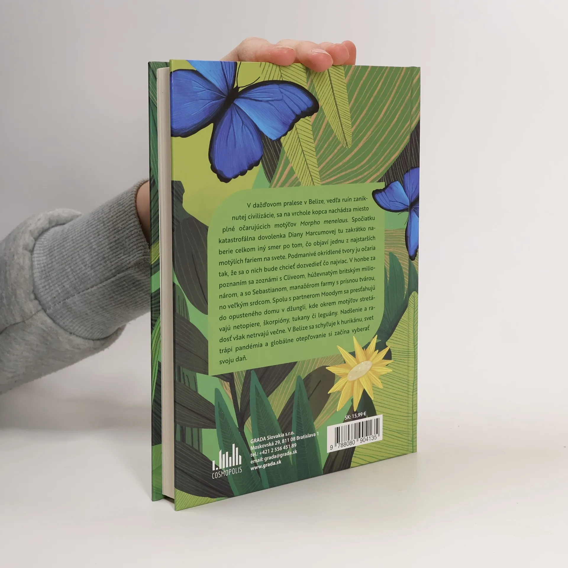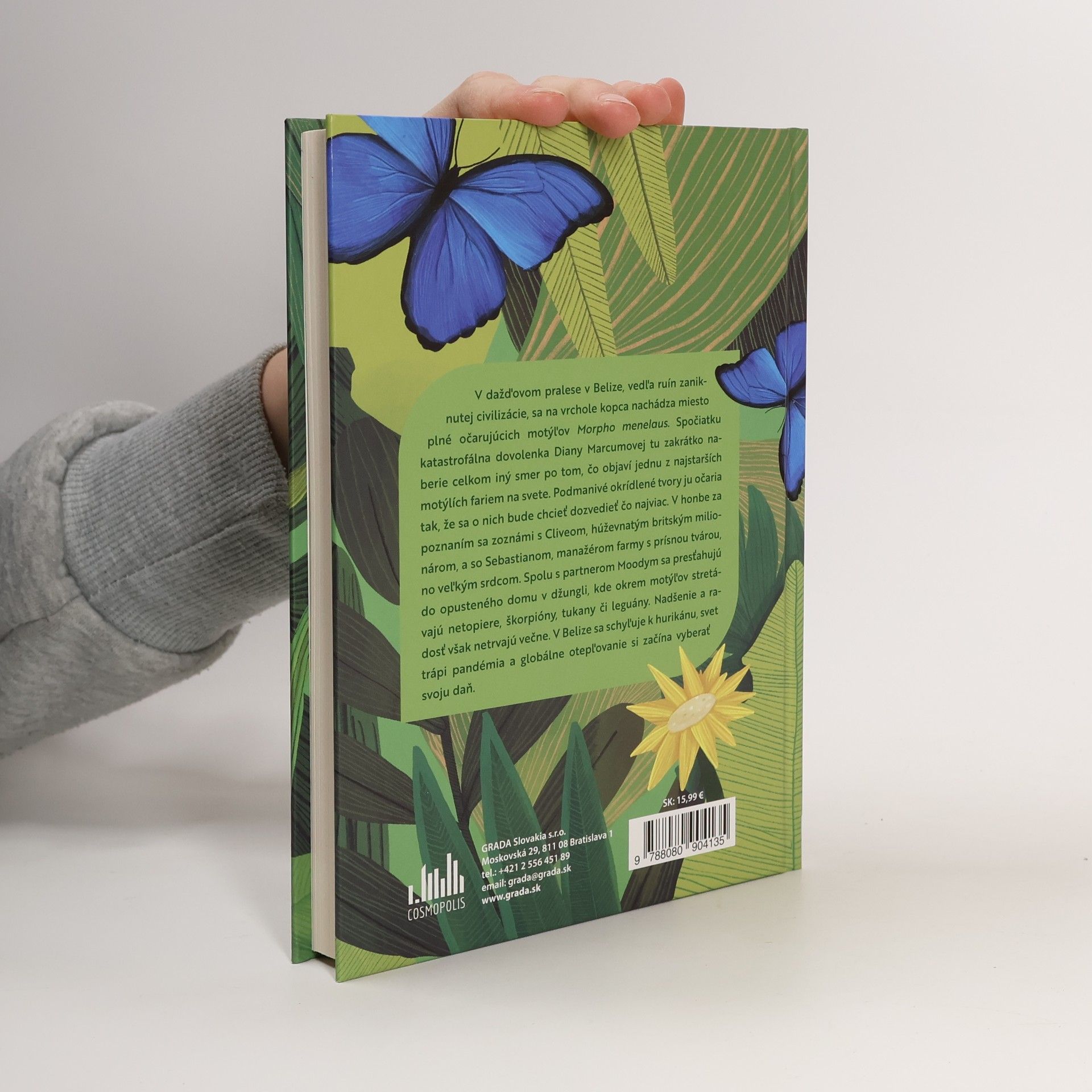 V dažďovom pralese v Belize, vedľa ruín zaniknutej civilizácie, sa na vrchole kopca nachádza miesto plné očarujúcich motýľov Morpho menelaus. Spočiatku katastrofálna dovolenka Diany Marcumovej tu zakrátko naberie celkom iný smer po tom, čo objaví jednu z najstarších motýlích fariem na svete. Podmanivé okrídlené tvory ju očaria tak, že sa o nich bude chcieť dozvedieť čo najviac. V honbe za poznaním sa zoznámi s Cliveom, húževnatým britským milionárom, a so Sebastianom, manažérom farmy s prísnou tvárou, no veľkým srdcom. Spolu s partnerom Moodym sa presťahujú do opusteného domu v džungli, kde okrem motýľov stretávajú netopiere, škorpióny, tukany či leguány. Nadšenie a radosť však netrvajú večne. V Belize sa schyľuje k hurikánu, svet trápi pandémia a globálne otepľovanie si začína vyberať svoju daň.