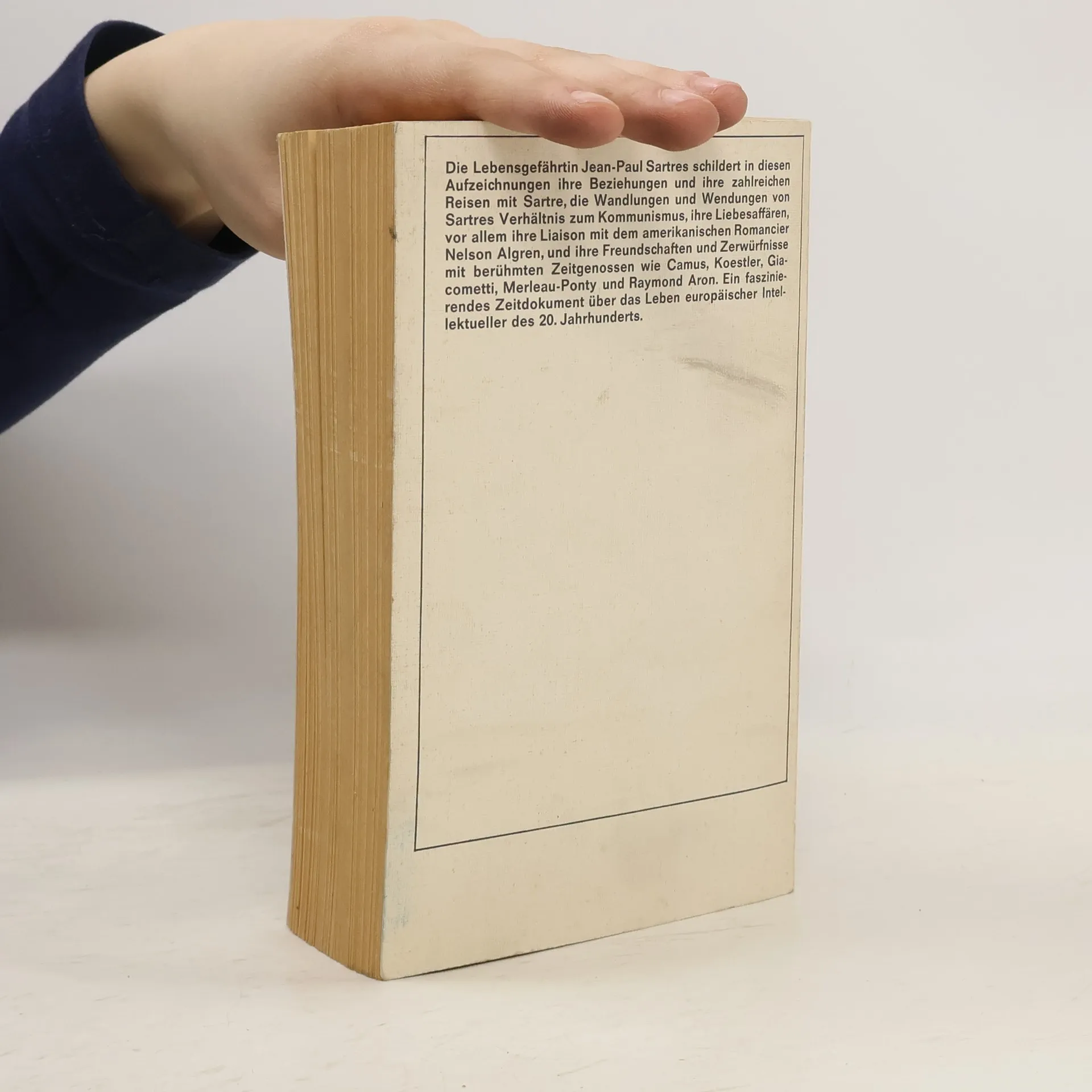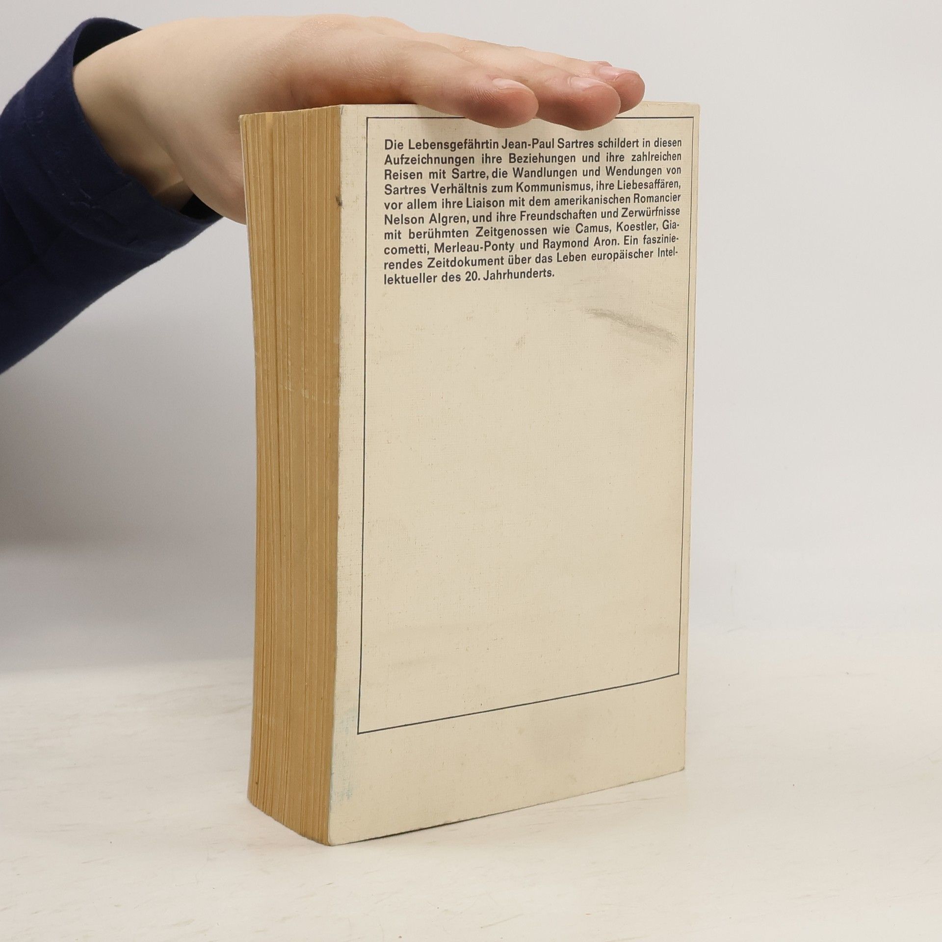 Die Lebensgefährtin Jean Paul Sartres schildert in diesen Aufzeichnungen ihre Beziehungen und ihre zahlreichen Reisen mit Sartre, die Wandlungen und Wendungen von Sartres Verhältnis zum Kommunismus, ihre Liebesaffären, vor allem ihre Liaison mit dem amerikanischen Romancier Nelson Algren, und ihre Freundschaften und Zerwürfnisse mit berühmten Zeitgenossen wie Camus, Koestler, Giacometti, Merleau-Ponty und Raymond Aron. Ein faszinierendes Zeitdokument über das Leben europäischer Intellektueller des 20. Jahrhunderts.