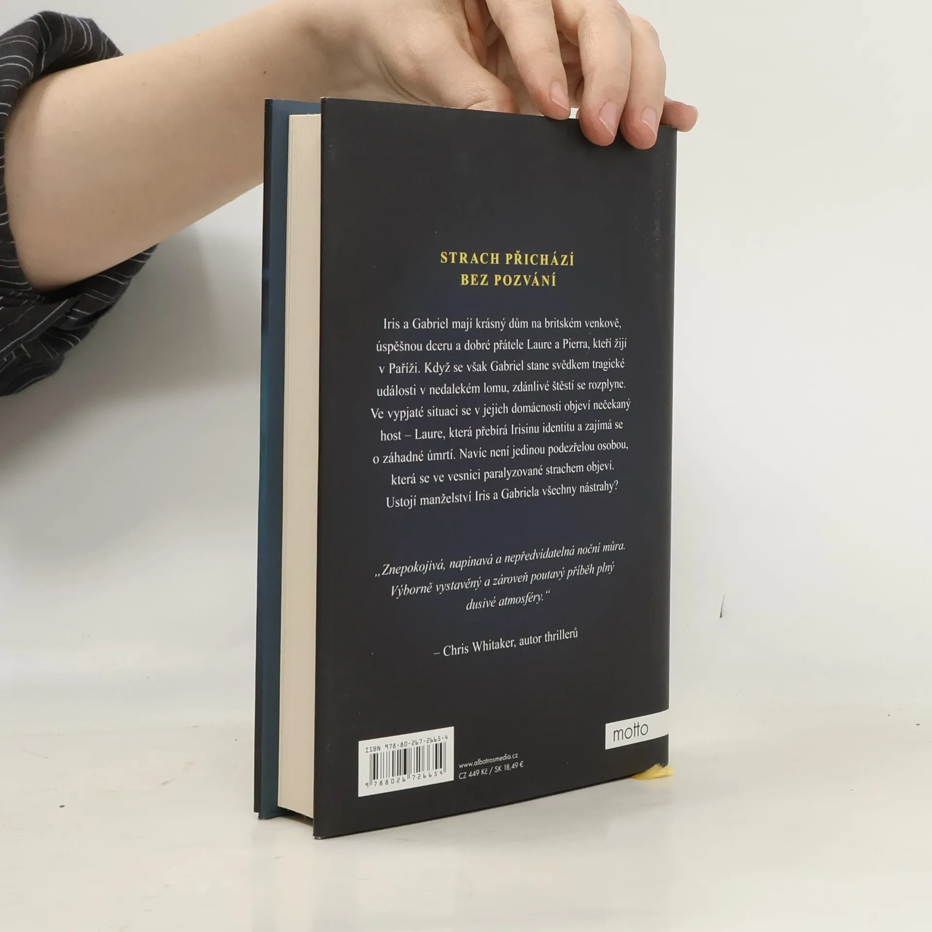 Strach přichází bez pozvání. Iris a Gabriel mají krásný dům na britském venkově, úspěšnou dceru a dobré přátele Laurie a Pierra, kteří žijí v Paříži. Když se však Gabriel stane svědkem tragické události v nedalekém lomu, zdánlivé štěstí se rozplyne. Ve vypjaté situaci se v jejich domácnosti objeví nečekaný host – Laurie, která přebírá Irisinu identitu a zajímá se o záhadné úmrtí. Navíc není jedinou podezřelou osobou, která se ve městě paralyzovaném strachem objeví. Ustojí manželství Iris a Gabriela všechny nástrahy?