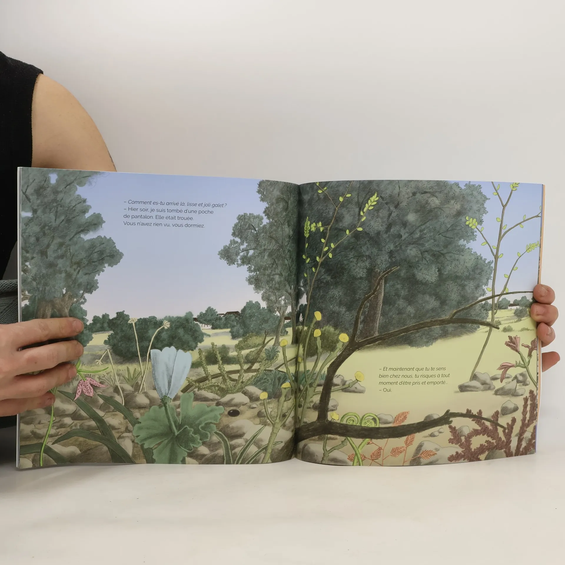 Grises, condamnées à l'immobilité, les pierres s'ennuyaient. Mais un beau matin, un galet noir, rond et lisse fait son apparition parmi elles. Il leur raconte sa naissance, sur une île étrange, sous les outils d'un sculpteur, puis ses voyages, ses naufrages, ses aventures, sa vie errante. Son destin est de rouler, de partir, d'être ballotté... Quelle différence avec la vie des pierres statiques. Que de rêves celles-ci feront dorénavant grâce à lui !