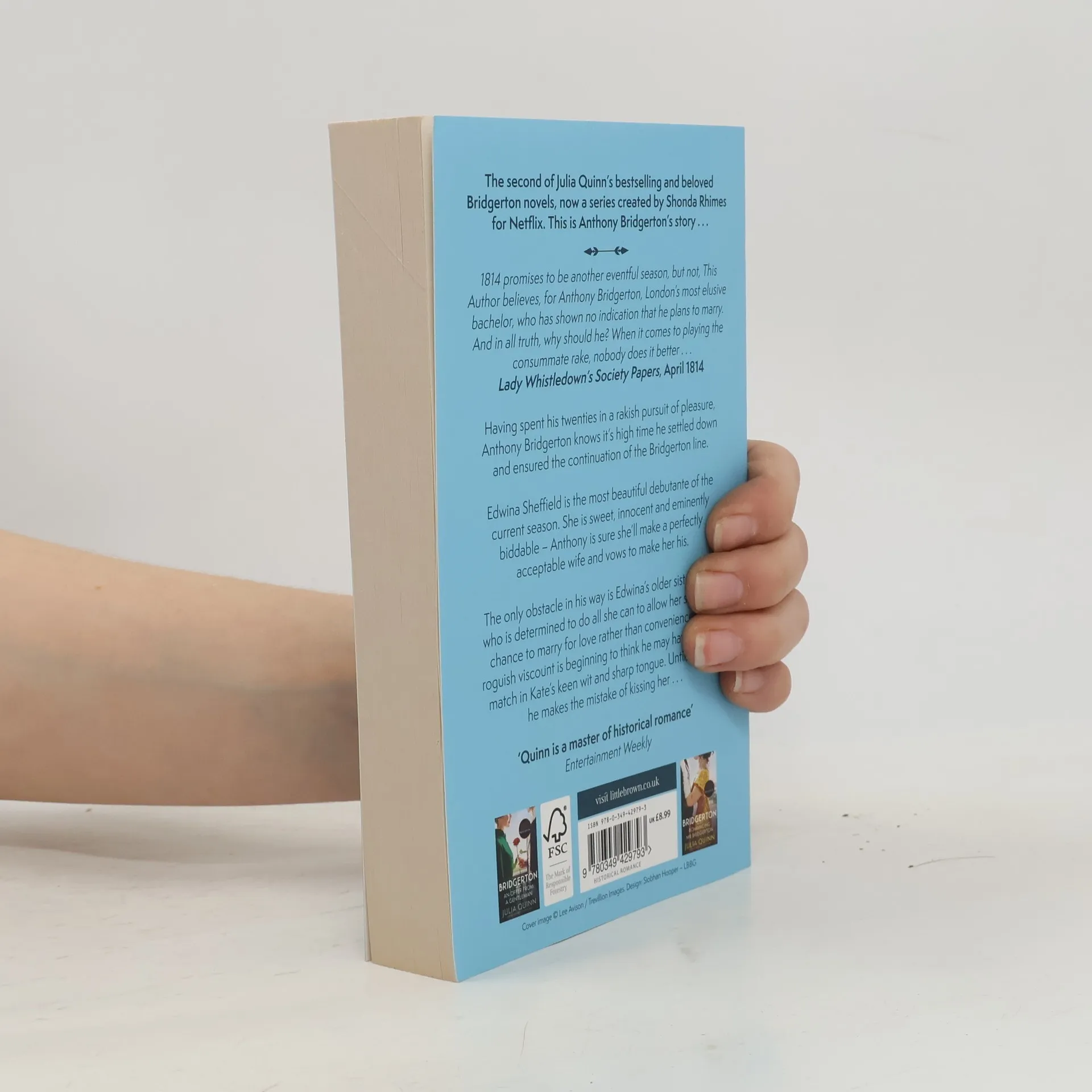 Vol. 1: Can there be any greater challenge to London's Ambitious Mamas than an unmarried duke? Lady Whistledown's Society Papers, April 1813By all accounts, Simon Basset is on the verge of proposing to his best friend's sister, the lovely - and almost-on-the-shelf - Daphne Bridgerton. But the two of them know the truth - it's all an elaborate plan to keep Simon free from marriage-minded society mothers. And as for Daphne, surely she will attract some worthy suitors now that it seems a duke has declared her desirable . . .Their ruse works like a charm - at first. But as Daphne waltzes across ballroom after ballroom with Simon, it's hard to remember that their courtship is a complete sham. Maybe it's his devilish smile, certainly it's the way his eyes seem to burn every time he looks at her. It wasn't the plan, but it seems she's falling for the duke, for real. And amidst the glittering, gossipy, cut-throat world of London's elite, there is only one certainty: love ignores every rule... [bookdepository.com].