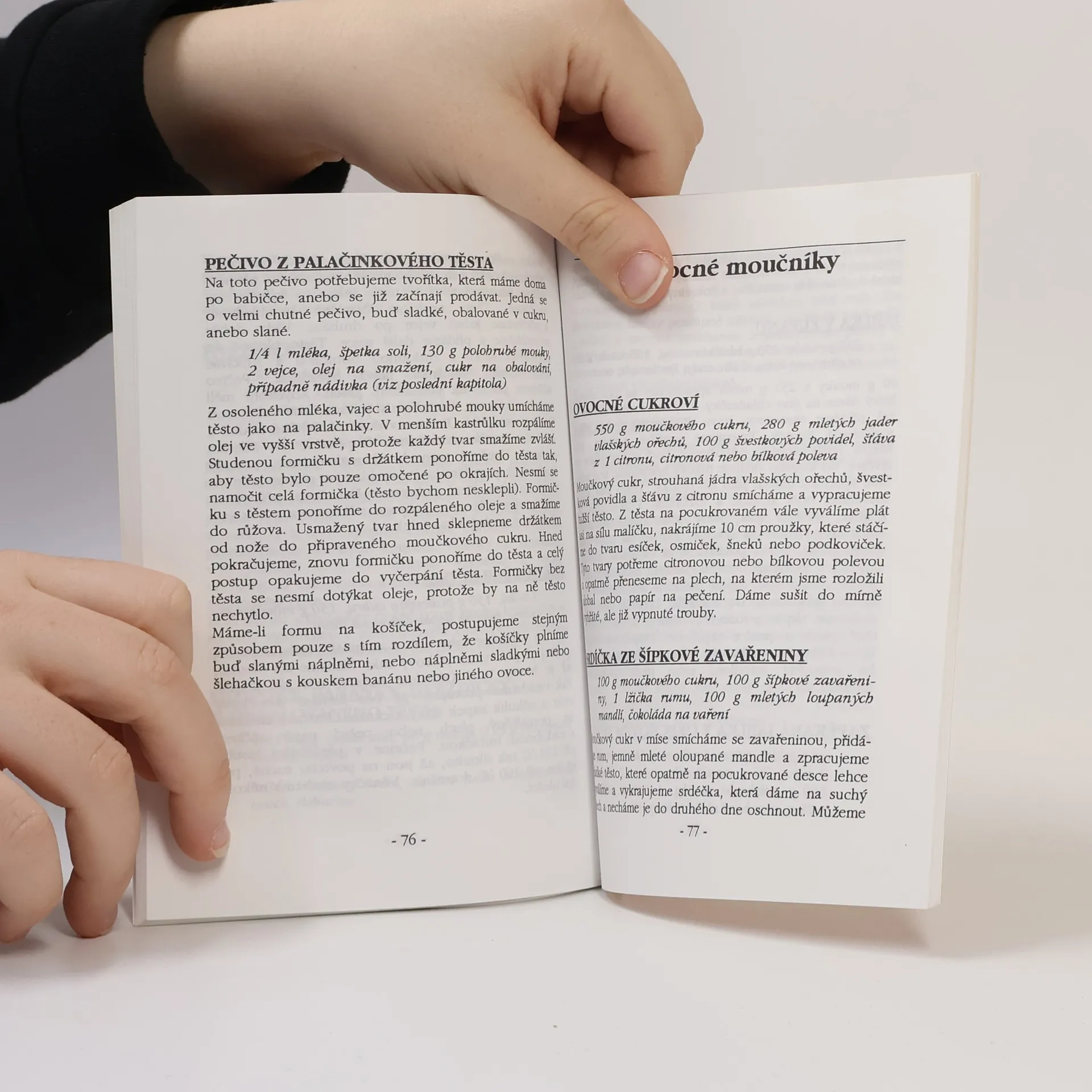 Bábovky, koláče, moučníky z kynutého těsta, řezy, rolády, bublaniny, makovce, perníky, tvarohové moučníky, bramborová těsta, záviny, dorty, cukroví, ovocné moučníky, polevy, náplně, nádivky, krémy a náplně, náplně do kynutých a křehkých těst. Druhé vydání. Cena knihy v čase vydání: 39.- Kč.