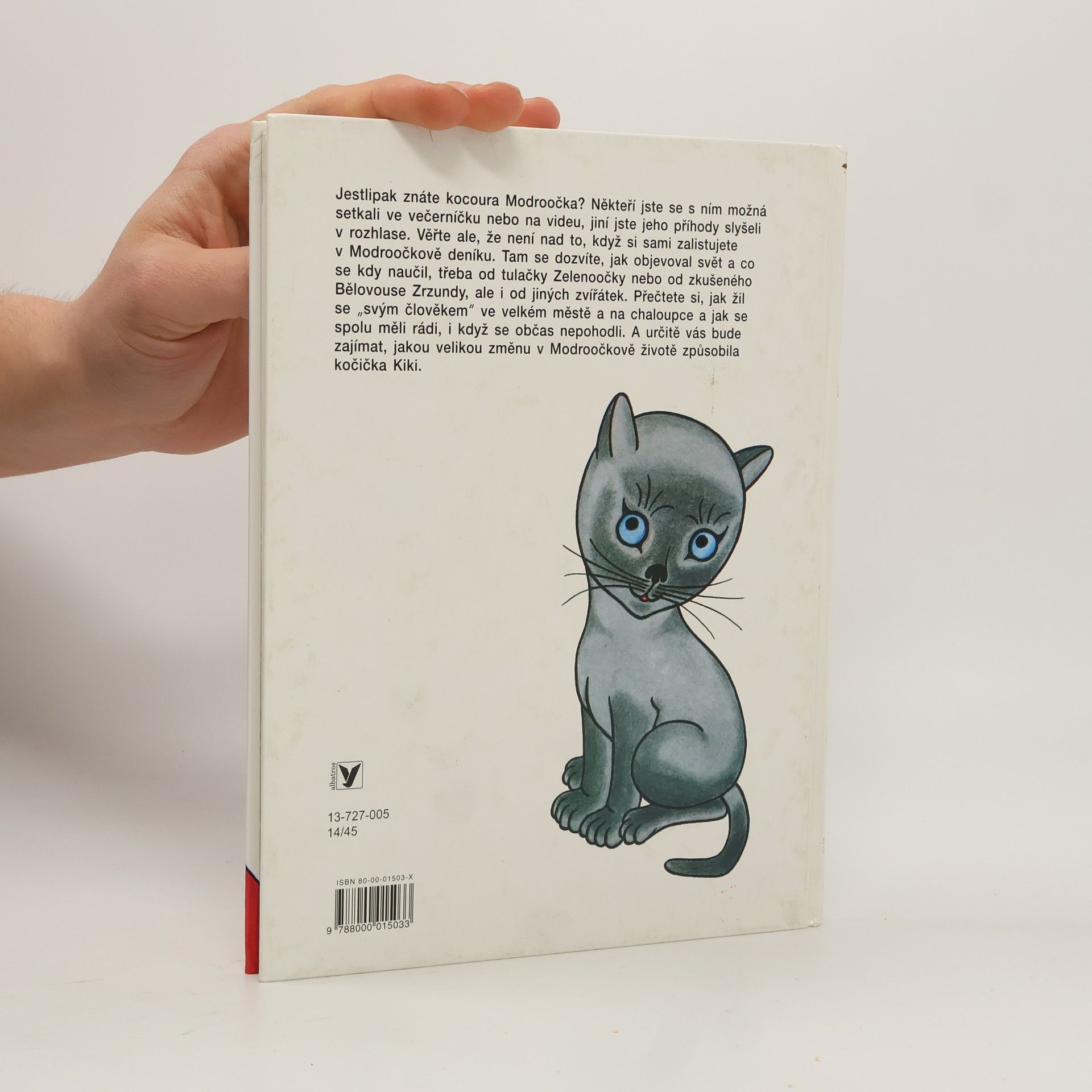 Hřejivé vyprávění malého kocourka o všem, co zažil se „svým člověkem“ od prvních krůčků po světě až po chvíli, kdy se sám stal pyšným otcem čtyř koťátek. Modroočkův deník nám prozradí, kdo je Zelenoočka, Bělovous Zrzunda, Kiki a co se od nich kocourek naučil. Modroočkovy příhody pobaví a rozveselí, a navíc leccos zajímavého vypoví o vlastnostech a zvycích různých zvířátek. Mnohé z nich děti již znají z rozhlasu i televize.