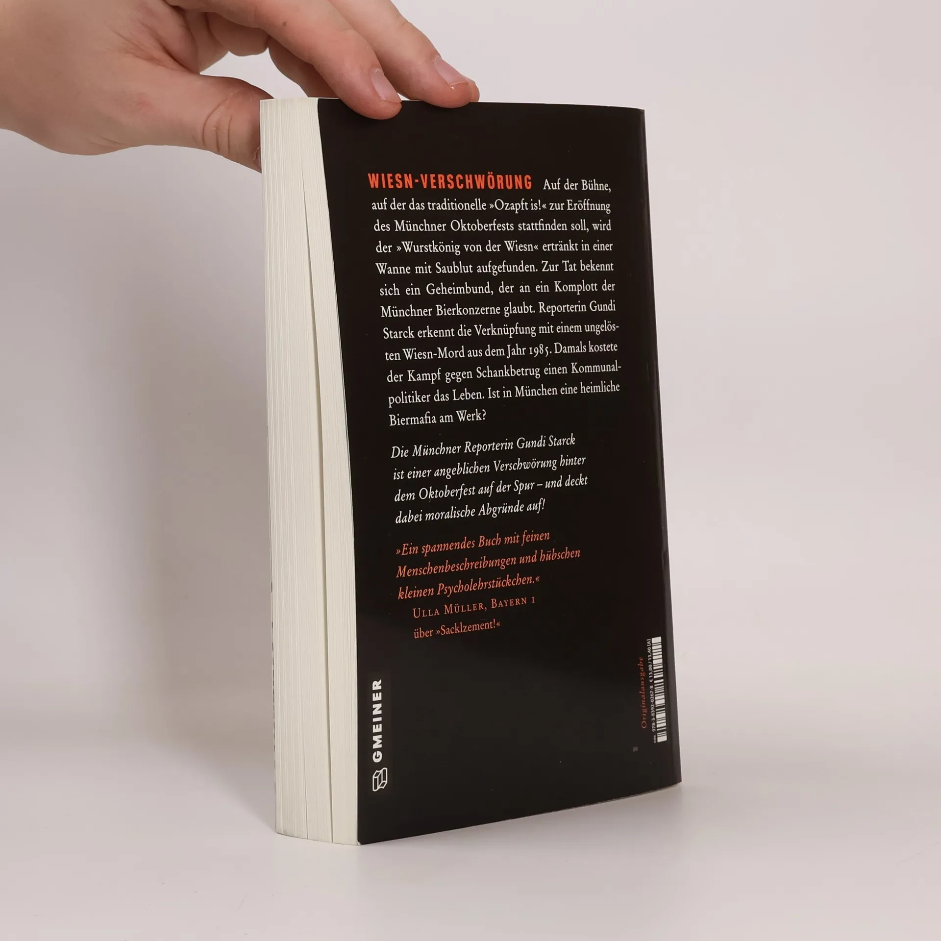 Auf der Bühne, auf der das traditionelle »Ozapft is!« zur Eröffnung des Münchner Oktoberfests stattfinden soll, wird der „Wurstkönig von der Wiesn“ ertränkt in einer Wanne mit Saublut aufgefunden. Zur Tat bekennt sich ein Geheimbund, der an ein Komplott der Münchner Bierkonzerne glaubt. Reporterin Gundi Starck erkennt die Verknüpfung mit einem ungelösten Wiesn-Mord aus dem Jahr 1985. Damals kostete der Kampf gegen Schankbetrug einen Kommunalpolitiker das Leben. Ist in München eine heimliche Biermafia am Werk?