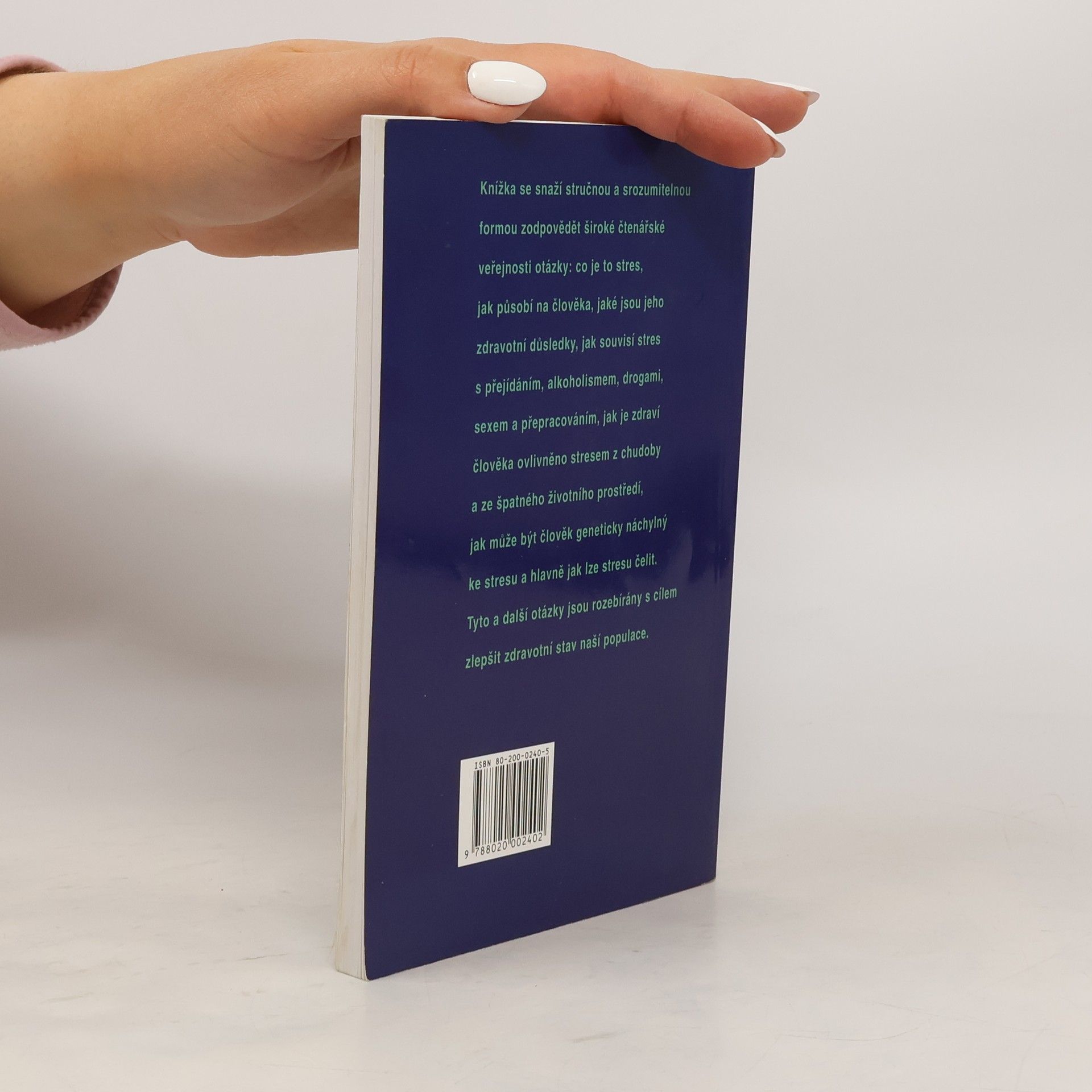 Autor vysvětluje jednotlivé druhy a příčiny stresu, zaměřuje se především na souvislosti mezi civilizačními chorobami a působením stresu. Dokazuje, jak stres ovlivňuje fyzickou i psychickou kondici člověka, zhoršuje zdravotní stav celé naší populace. Závěry a jednotlivá tvrzení jsou podloženy empirickými výzkumy. 2., upravené vydání.