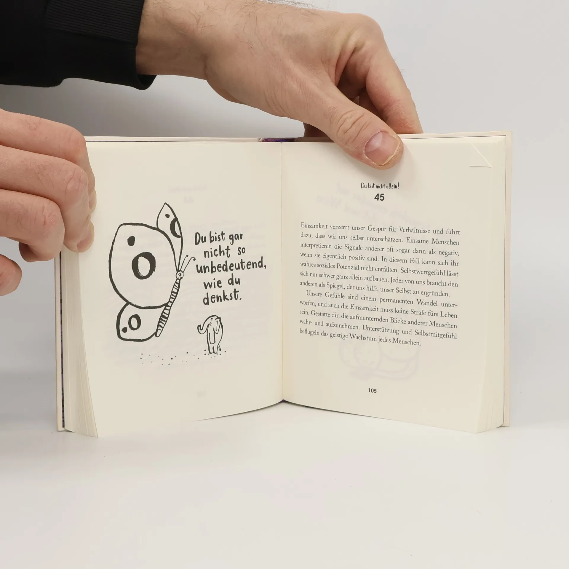Alleinsein fühlt sich sehr unterschiedlich an. Manchmal genießen wir es, manchmal empfinden wir es als schmerzlich: Wenn man in eine neue Stadt kommt oder wenn auf einmal die Kinder aus dem Haus sind. Ist man zu lange allein, fühlt man sich einsam; aber auch in Gesellschaft kann man sich einsam fühlen. Und wer gibt schon gerne zu, dass er allein ist? Wie wichtig für uns alle soziale Beziehungen sind, wird uns gerade jetzt bewusst, in einer Zeit, die viele zum Alleinsein zwingt. Du bist nicht allein begleitet uns wie ein guter Freund. Es lässt uns Alleinsein und Einsamkeit besser verstehen und hilft uns, mit diesem Gefühl umzugehen. Dieses Buch behandelt ein existentielles Thema auf neue und liebenswerte Weise: Es kombiniert 100 knappe, klare Texte über das Alleinsein in der Kindheit und Jugend, im Erwachsenenleben und Alter mit herzerwärmenden, humorvollen Illustrationen, die in jeder Lebenslage Trost spenden.
