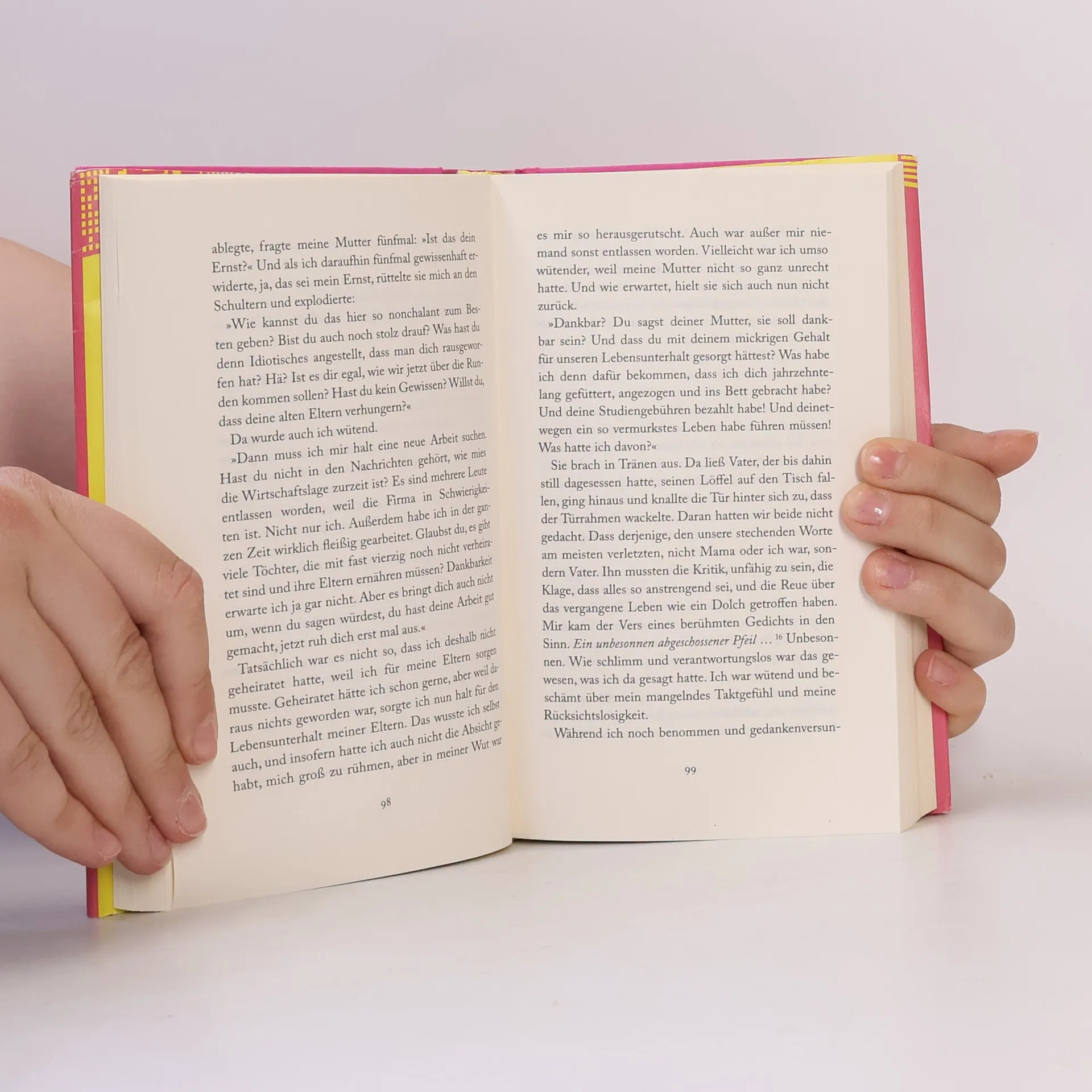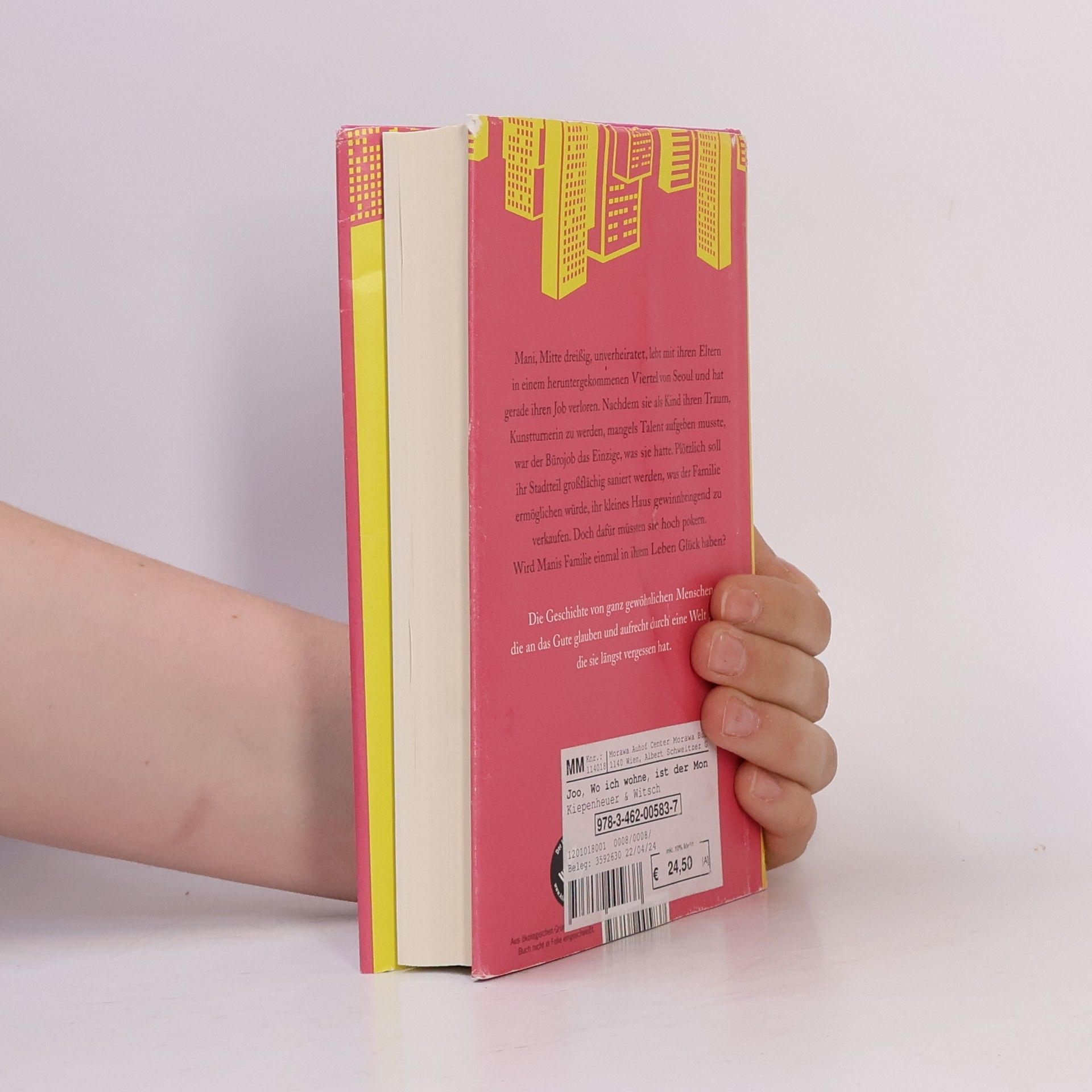 Die koreanische Bestsellerautorin Cho Nam-Joo widmet sich in diesem Entwicklungsroman einem Frauenleben, das geprägt ist von Armut und der immensen Scham, mit Mitte 30 noch unverheiratet zu sein. Manis Familie lebt in einem der ärmsten Stadtteile von Seoul. Ihr Vater arbeitet in einem Imbiss und ihre Mutter ist erwerbslos. Als kleines Mädchen träumte Mani davon, rhythmische Sportgymnastin zu werden, inspiriert durch Fernsehbilder der Olympischen Spiele 1988 in Seoul. Als Kind fängt sie mit dem Turnen an, muss aber schnell einsehen, dass sie im Vergleich zu anderen kein Talent hat. Sie wird ein einfaches, unerfülltes Leben führen, auch geprägt von der Demütigung, mit Mitte dreißig noch keine eigene Familie zu haben. Die Nachricht von der Stadtteilsanierung lässt die Immobilienpreise in die Höhe schießen, gleichzeitig erfährt Manis Familie zufällig, dass die Sanierung abgeblasen werden solle. Als ein Fremder ihr Haus kaufen will, ist die Familie uneins darüber, ob sie diesem gutmütigen Mann die Wahrheit sagen oder ihn täuschen soll. Ihr ganzes Leben lang haben sie sich an das Prinzip der Ehrlichkeit gehalten. Welche Entscheidung werden sie treffen, wenn sie vor dem größten Dilemma ihres Lebens stehen?