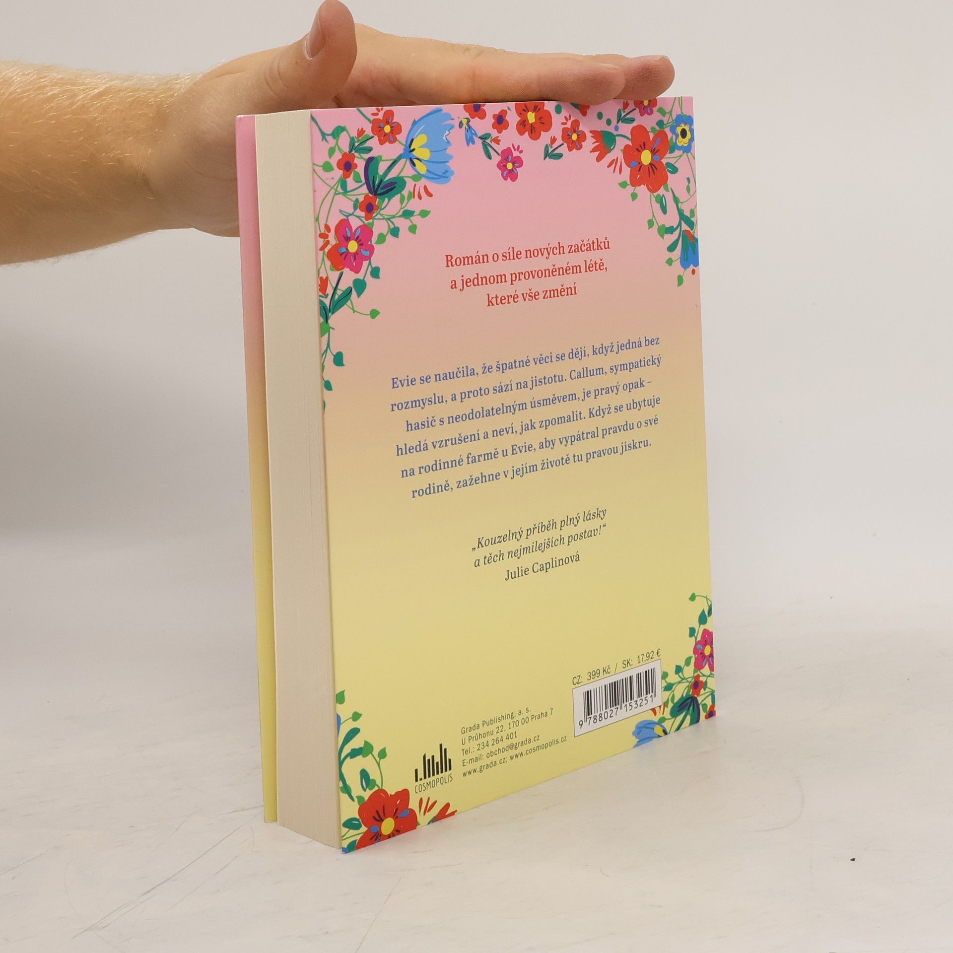 Evie se naučila, že špatné věci se dějí, když jedná bez rozmyslu, a proto sází na jistotu. Callum, sympatický hasič s neodolatelným úsměvem, je pravý opak – hledá vzrušení a neví, jak zpomalit. Když se ubytuje na rodinné farmě u Evie, aby vypátral pravdu o své rodině, zažehne v jejím životě tu pravou jiskru. „Kouzelný příběh plný lásky a těch nejmilejších postav.“ Julie Caplinová