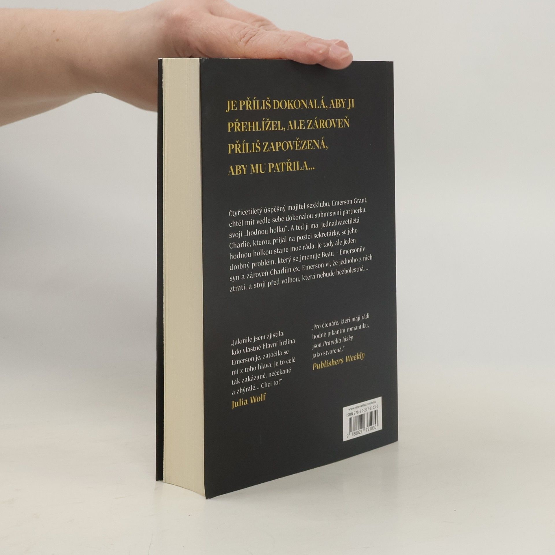 Erotická romance americké autorky je prvním titulem delší série. Říká mi, že jsem dokonalá. Jeho bezchybná submisivní partnerka. Jeho hodná holka. Zlomil mě vztah s přítelem, který mě zanedbával, a toužila jsem, aby mi někdo řekl, že za to stojím. Pak jsem nečekaně získala práci u šéfa, před kterým padám na kolena - doslova. Dělám kvůli němu věci, ke kterým by se skutečná sekretářka nikdy neodvážila. Emerson Grant mi říká, že mu víc než jen stačím. Jsem hodná jeho chvály. Existuje ale spousta důvodů, proč bych se od něj měla držet dál. Je majitelem Klubu prostopášníků a není jen mým novým šéfem - je dvakrát tak starý jako já. A navíc je to otec mého bývalého. V jeho přítomnosti se cítím milovaná a zbožňovaná. Patřím mu. Jsem hodná holka, ale začínám být zamilovaná do toho nesprávného. Emerson Grant ví, co chce - a chce mě. Jak daleko zajdu, abych si vysloužila jeho uznání? Nakladatelská anotace.