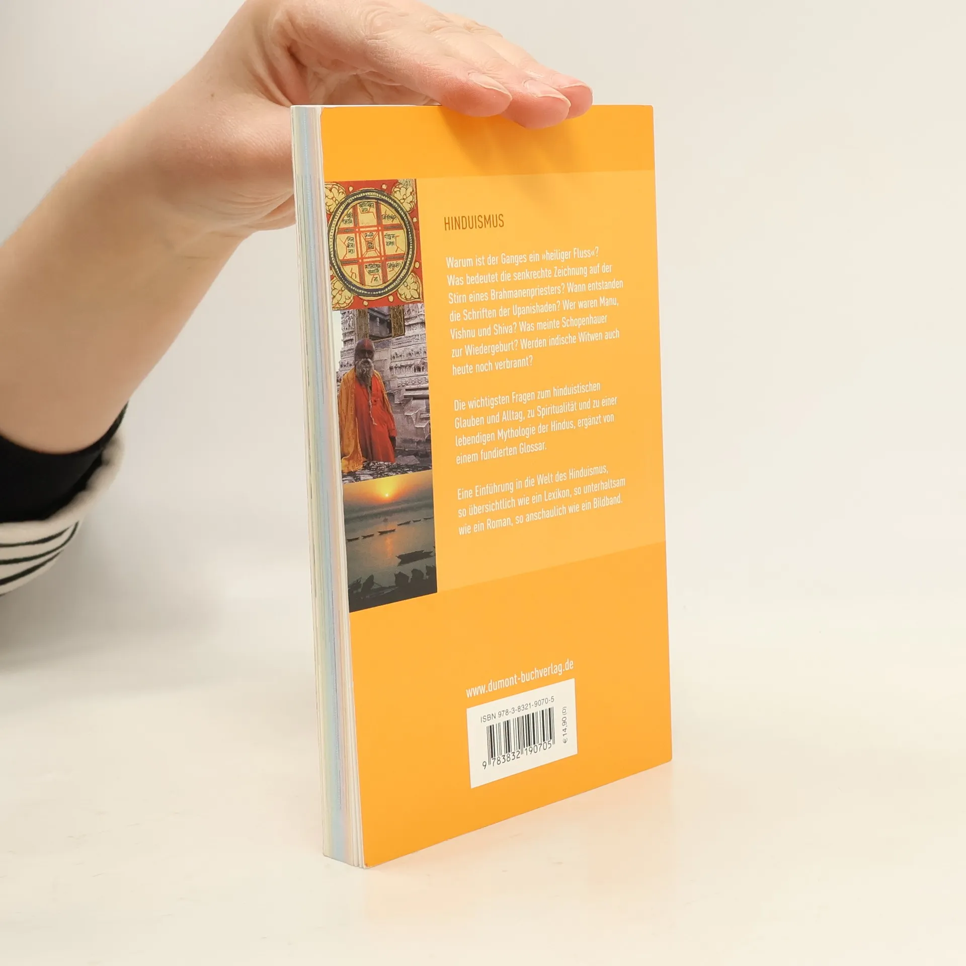 Eine Reise durch die hinduistische Geisteswelt von der Indus-Kultur bis ins anbrechende 21. Jahrhundert. Wer sind Brahma, Vishnu und Shiva? Welche Tradition steckt hinter Tantra und Yoga? Welche Funktion haben Gurus, Svamis und Yogis? Von der vedischen Kultur und dem Brahmanismus über Darshana, die Philosophie der Hindus, heilige Texte und Orte, bis hin zum Alltagsleben zwischen Kastenwesen und modernem Hinduismus.