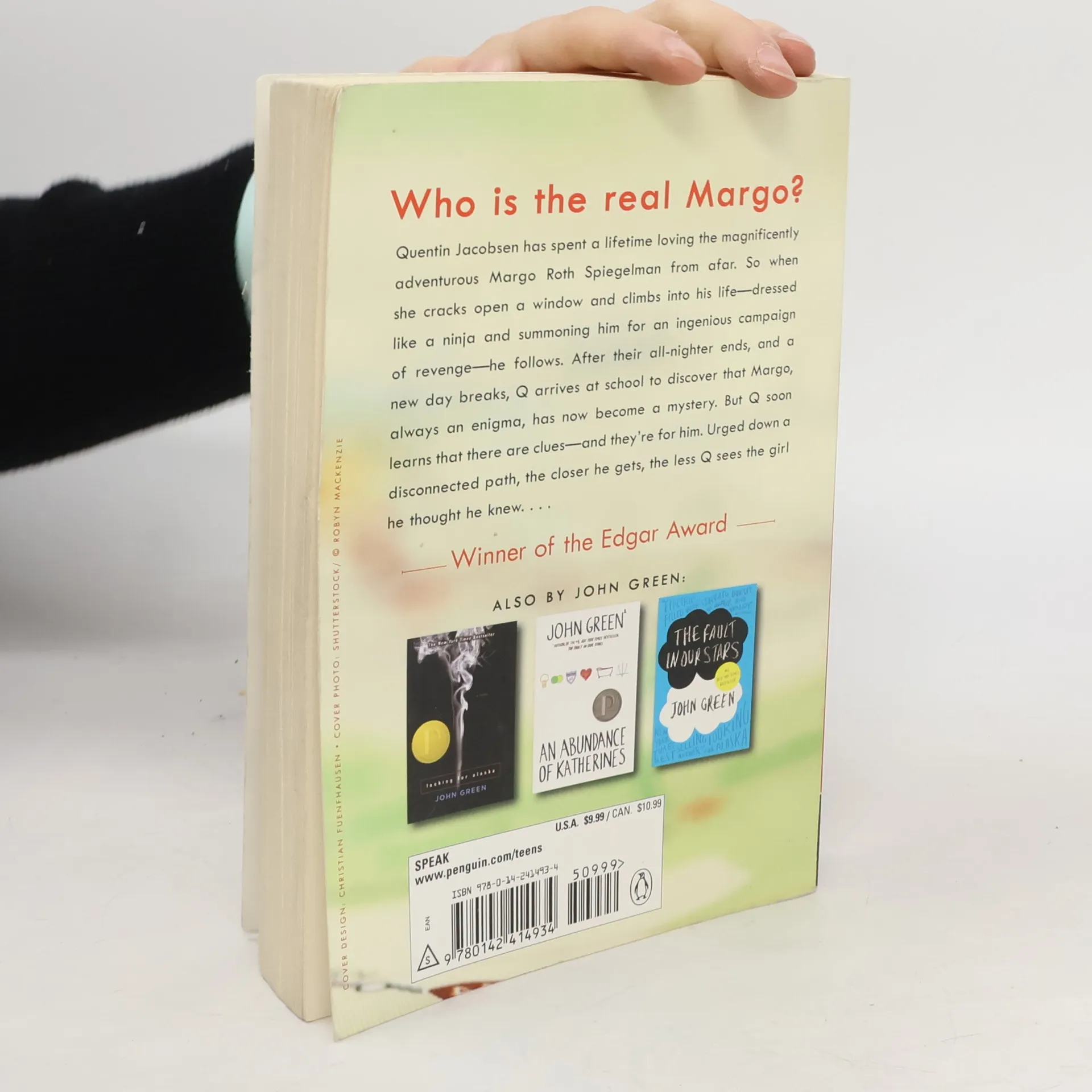 From the #1 bestselling author of Turtles All the Way Down and The Fault in Our Stars Winner of the Edgar Award for Best Young Adult Mystery #1 New York Times Bestseller USA Today Bestseller Publishers Weekly Bestseller Now a major motion picture When Margo Roth Spiegelman beckons Quentin Jacobsen in the middle of the night—dressed like a ninja and plotting an ingenious campaign of revenge—he follows her. Margo’s always planned extravagantly, and, until now, she’s always planned solo. After a lifetime of loving Margo from afar, things are finally looking up for Q . . . until day breaks and she has vanished. Always an enigma, Margo has now become a mystery. But there are clues. And they’re for Q. Printz Medalist John Green returns with the trademark brilliant wit and heart-stopping emotional honesty that have inspired a new generation of readers.