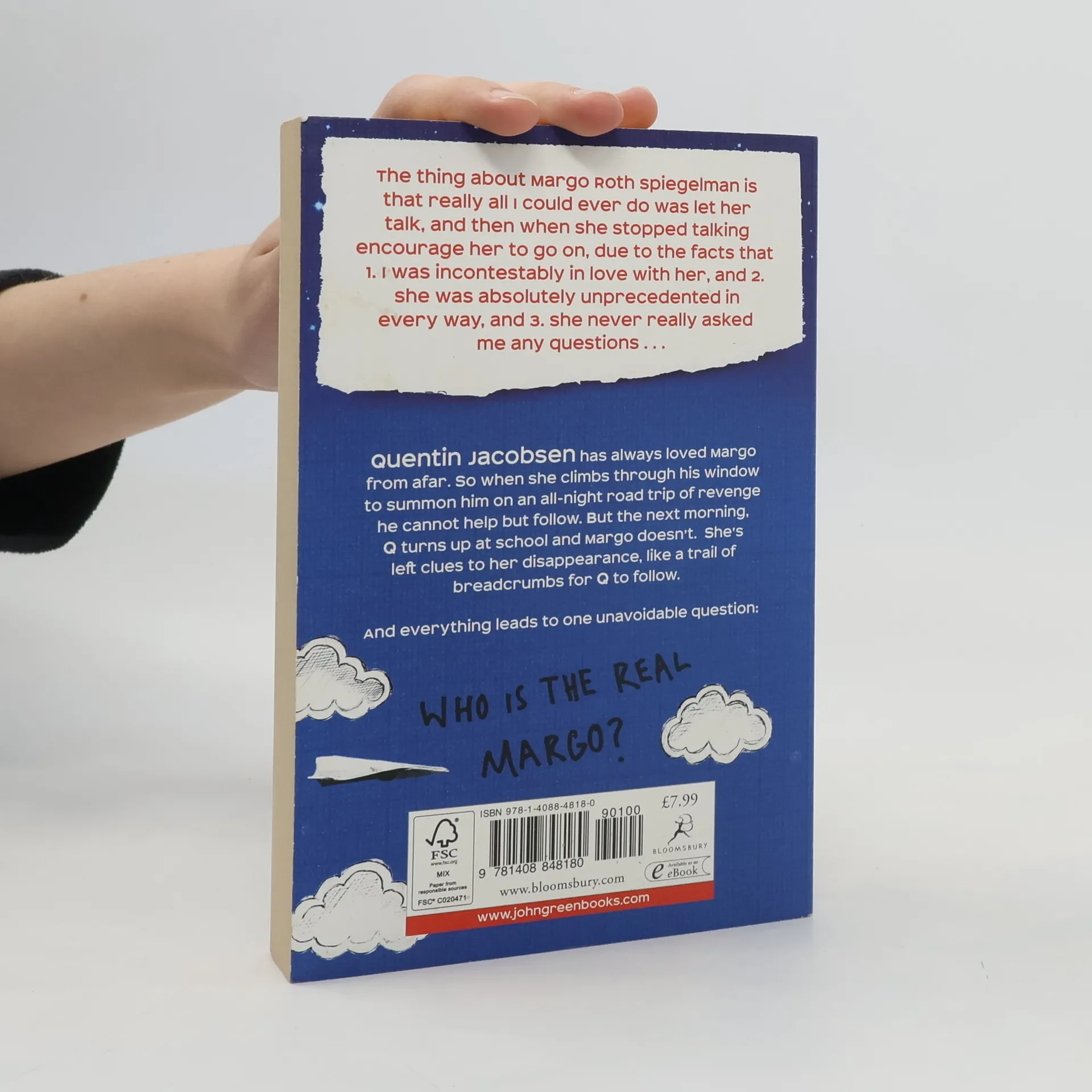 Quentin Jacobson has spent a lifetime loving Margo Roth Spiegelman from afar. So when she cracks open a window and climbs into his life - dressed like a ninja and summoning him for an ingenious campaign of revenge - he follows. After their all-nighter ends, Q arrives at school to discover that Margo has disappeared.