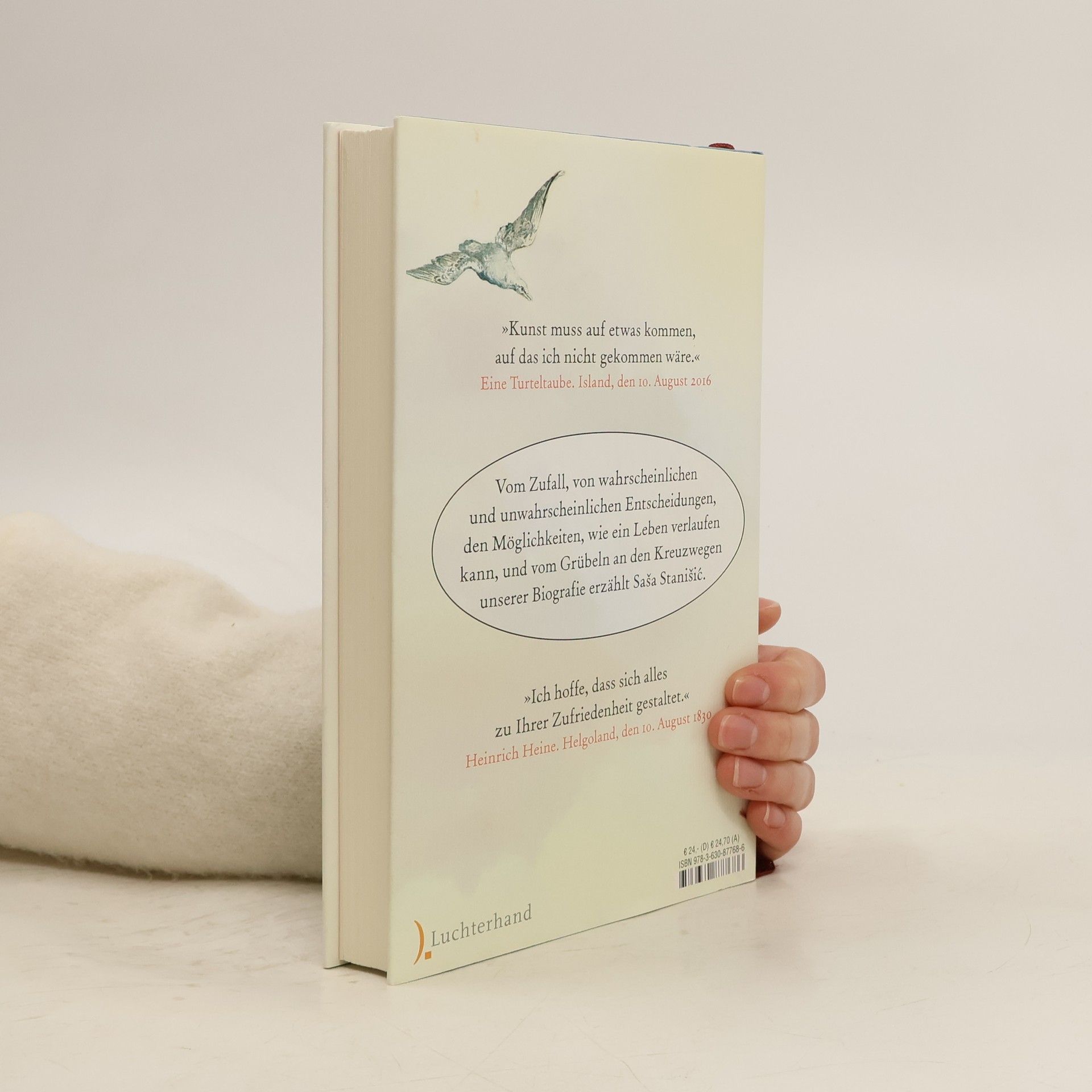 Was wäre, wenn man nicht diese eine Entscheidung getroffen hätte, sondern jene andere? Was wäre, hätte man der Erwartung getrotzt? Und dann ist da trotzdem die Furcht, feige gewesen zu sein, zu lange gezögert und etwas verpasst zu haben, ein besseres Ich, ein größeres Glück, die lustigeren Haustiere und Partner. Saša Stanišić führt uns an Orte, an denen das auf einmal möglich ist: den schwierigeren Weg zu gehen, eine unübliche Wahl zu treffen oder die eine gute Lüge auszusprechen. So wie die Reinigungskraft, die beschließt, mit einer Bürste aus Ziegenhaar in der Hand, endlich auch das Leben in die eigenen Hände zu nehmen. So wie der Justiziar, der bereit ist zu betrügen, um endlich gegen seinen achtjährigen Sohn im Memory zu gewinnen. Und so wie der deutsch-bosnische Schriftsteller, der zum ersten Mal nach Helgoland reist, nur um dort festzustellen, dass er schon einmal auf Helgoland gewesen ist. Am besten wäre ja, man könnte ein Leben probeweise erfahren, bevor man es wirklich lebt.