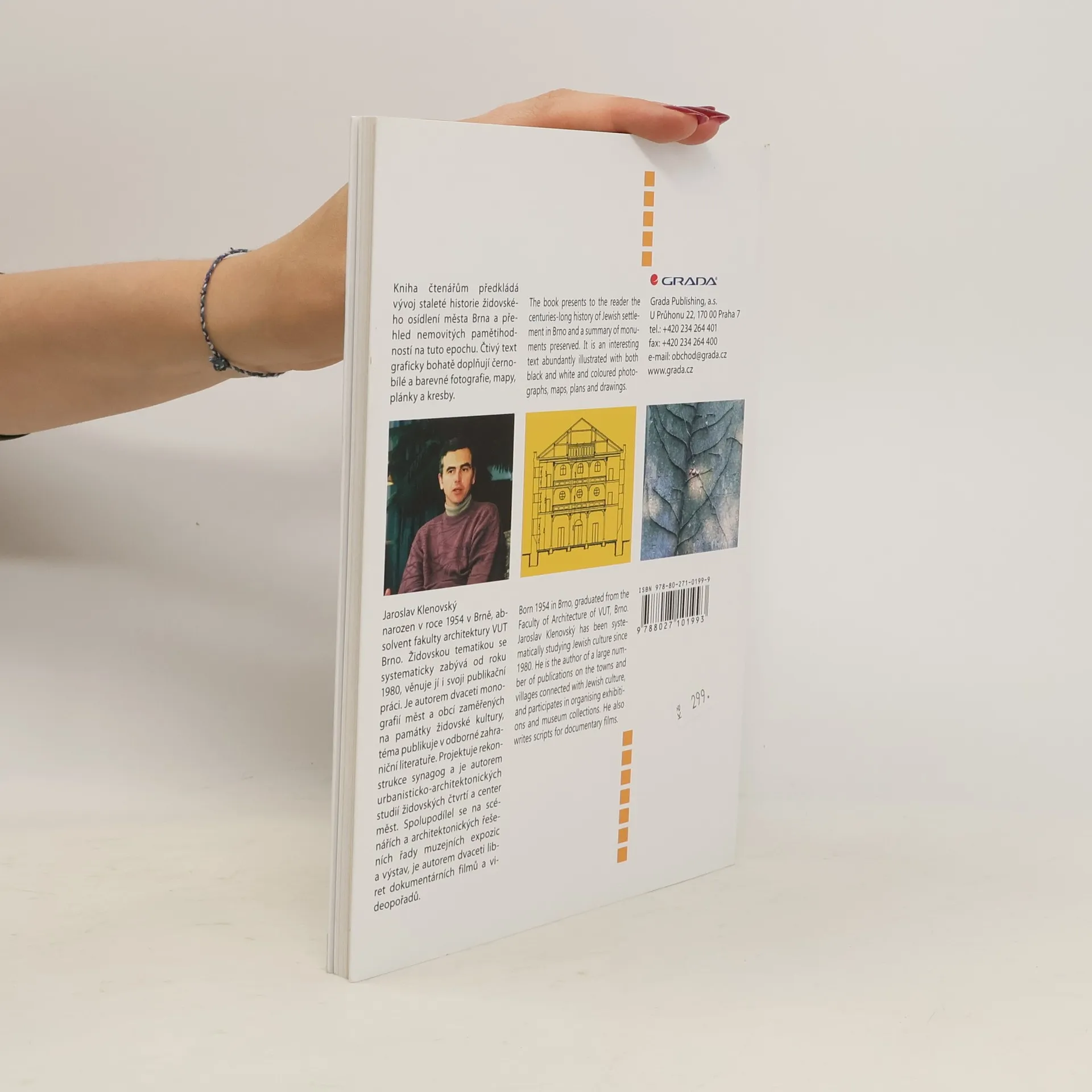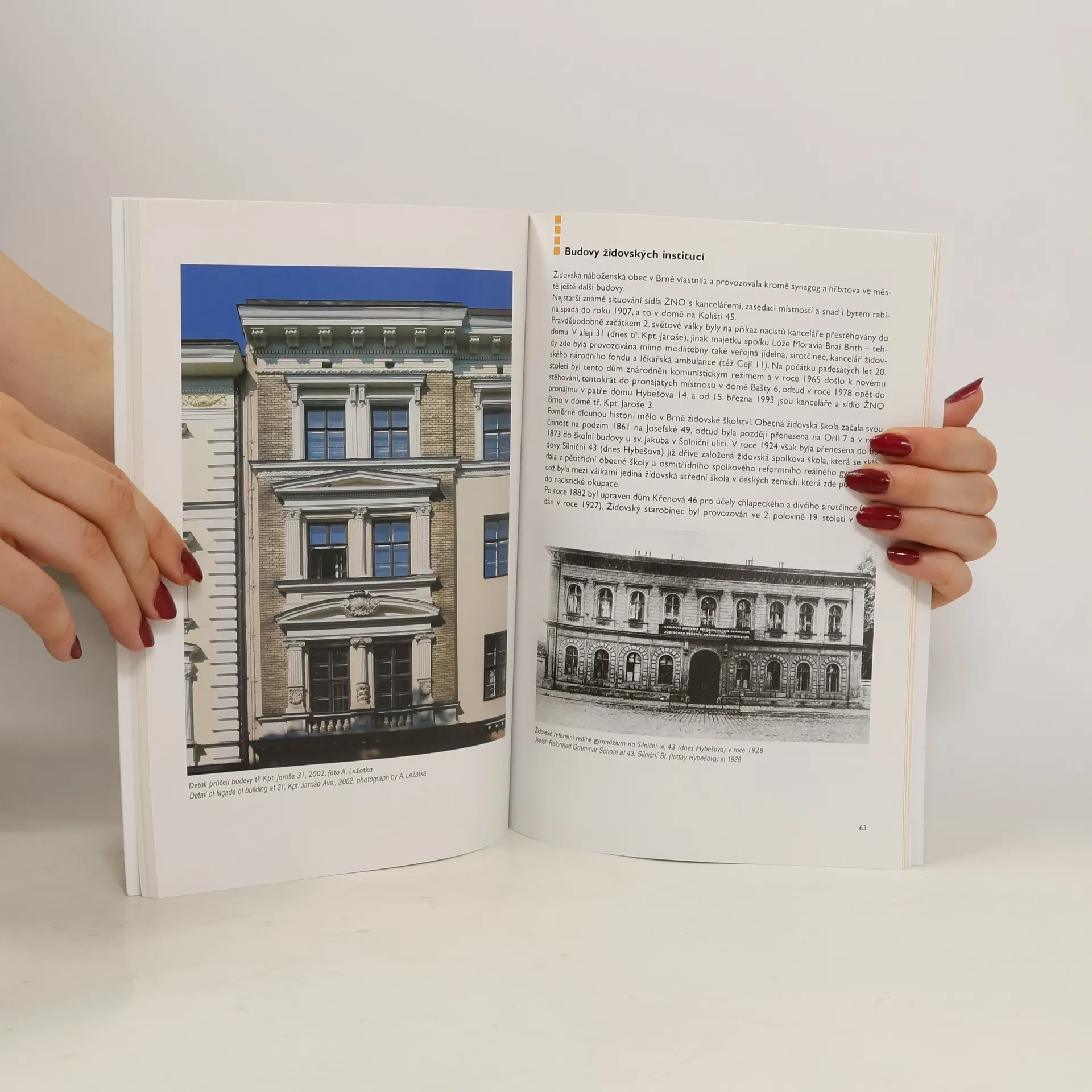 Kniha čtenářům předkládá vývoj staleté historie židovského osídlení města Brna a přehled nemovitých pamětihodností. Čtivý text graficky bohatě doplňují černobílé a barevné fotografie, mapy, plánky a kresby. The book presents to the reader the centuries-long history of Jewish settlement in Brno and a summary of monuments preserved. It is an interesting text abundantly illustrated with both black and white and coloured photographs, maps, plans and drawings.