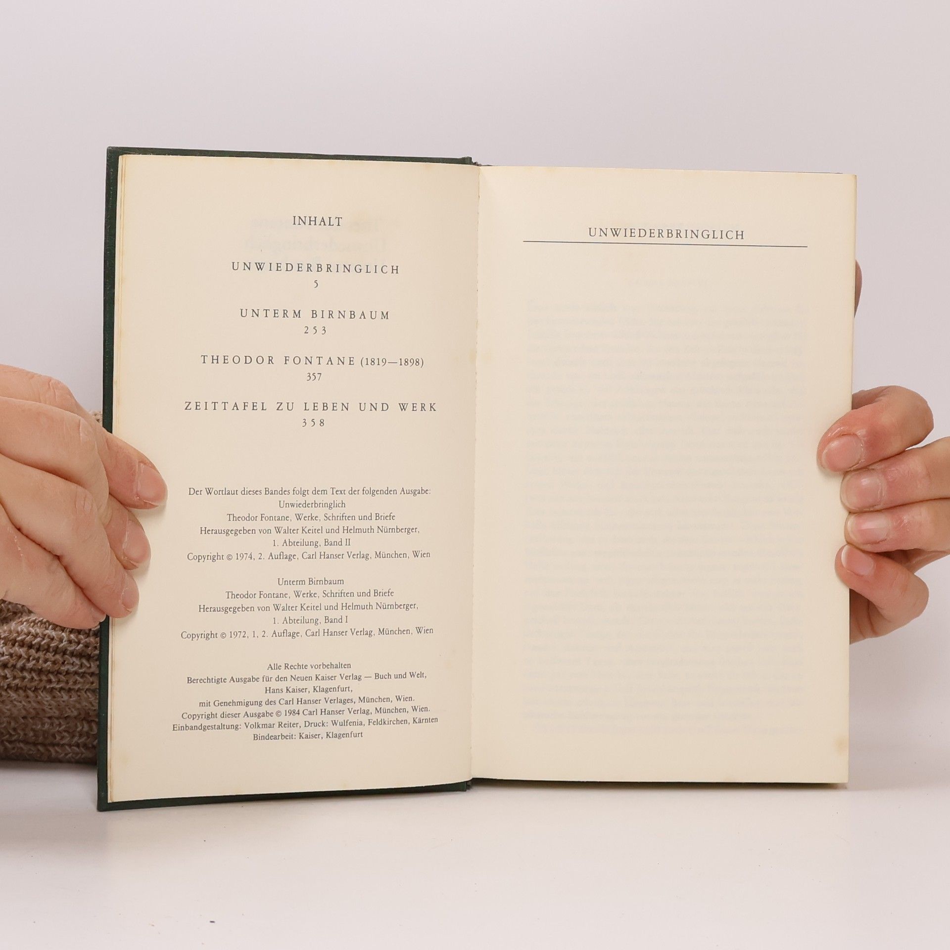 Unwiederbringlich - Unterm Birnbaum, Theodor Fontane