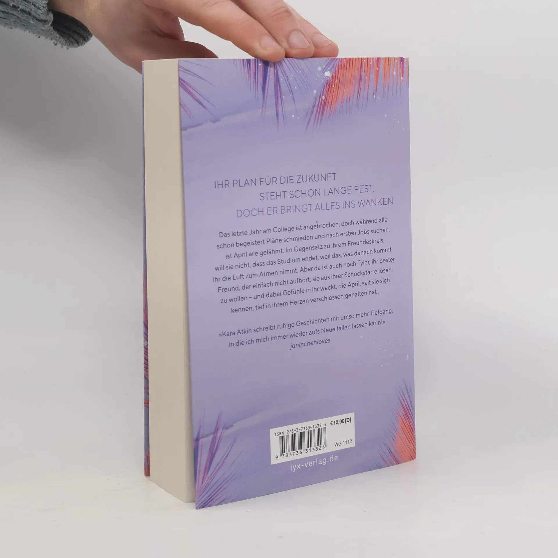 Ihr Plan für die Zukunft steht schon lange fest, doch er bringt alles ins Wanken Das letzte Jahr am College ist angebrochen, doch während alle schon begeistert Pläne schmieden und nach ersten Jobs suchen, ist April wie gelähmt. Im Gegensatz zu ihrem Freundeskreis will sie nicht, dass das Studium endet, weil das, was danach kommt, ihr die Luft zum Atmen nimmt. Aber da ist auch noch Tyler, ihr bester Freund, der einfach nicht aufhört, sie aus ihrer Schockstarre lösen zu wollen - und dabei Gefühle in ihr weckt, die April, seit sie sich kennen, tief in ihrem Herzen verschlossen gehalten hat ... „Kara Atkin schreibt ruhige Geschichten mit umso mehr Tiefgang, in die ich mich immer wieder aufs Neue fallen lassen kann!“ JANINCHENLOVES Abschlussband der dreibändigen New-Adult-Reihe von Kara Atkin
