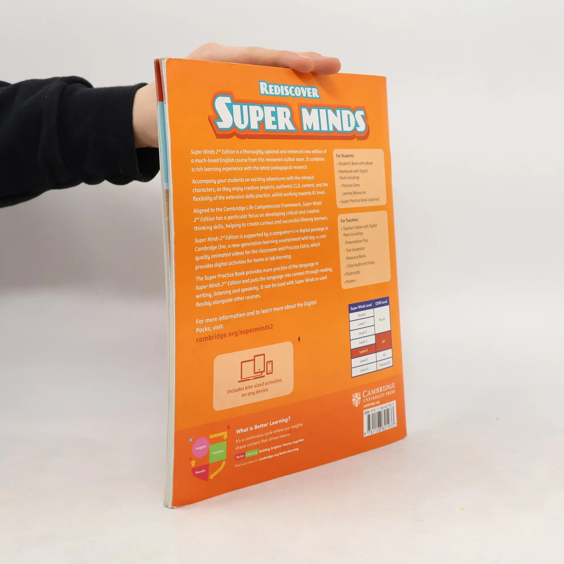 Super Minds is back and is super charged! Alongside the super friends and the explorers, young learners make their way towards B1 over seven levels, solving mysteries along the way. The course is aligned with the Cambridge Life Competencies Framework and has a particular focus on developing critical and creative thinkers, capable of investigating Big Questions. Students learn to apply English to their lives outside the classroom, while developing the language and life skills they need to grow into confident, collaborative, responsible individuals. The course is brought out of the book and onto the screen by five videos per unit, featuring various entertaining characters, animations and documentary-style footage.