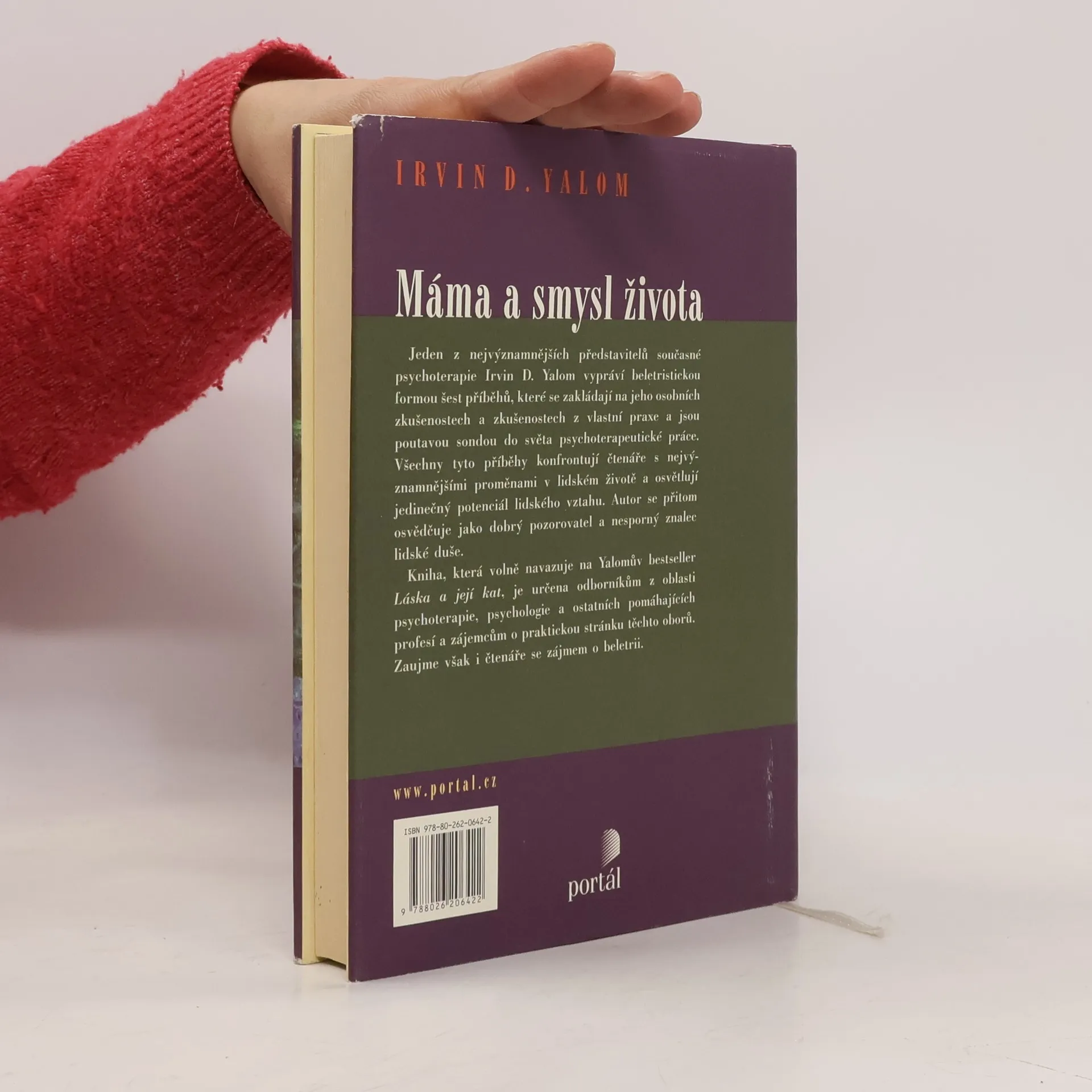 Máma a smysl života je dlouho očekávaným volným pokračováním Yalomova bestselleru Láska a její kat. V této knize se jeden z nejvýznamnějších současných psychoterapeutů pokusil být současně vypravěčem a učitelem. Tam, kde se tyto dvě role dostaly do sporu a autor musel volit mezi vložením pikantní pedagogické poznámky a udržením dramatického tempa příběhu, téměř vždy dává přednost příběhu a své pedagogické poslání se pokouší naplnit nepřímo. V šesti příbězích - jednom vlastním Máma a smysl života a pěti příbězích svých klientů Výlety s Paulou, Jižní útěcha, Sedm lekcí v terapii zármutku pro pokročilé, Dvojitá expozice, Prokletí maďarské kočky - se pokouší setřít hranice mezi beletrií a odbornými publikacemi. Přibližuje svěžím jazykem existenciální terapeutické přístupy, dynamiku zármutku ze ztráty blízké osoby, nastiňuje i problémy vyplývající ze vztahu mezi klientem a terapeutem, zvažuje míru upřímnosti, důvěrnost informací o pacientech, průhlednost terapeuta aj. Kniha zaujme odborníky pomáhajících profesí i zájemce o témata z oblasti psychoterapie a psychologie.