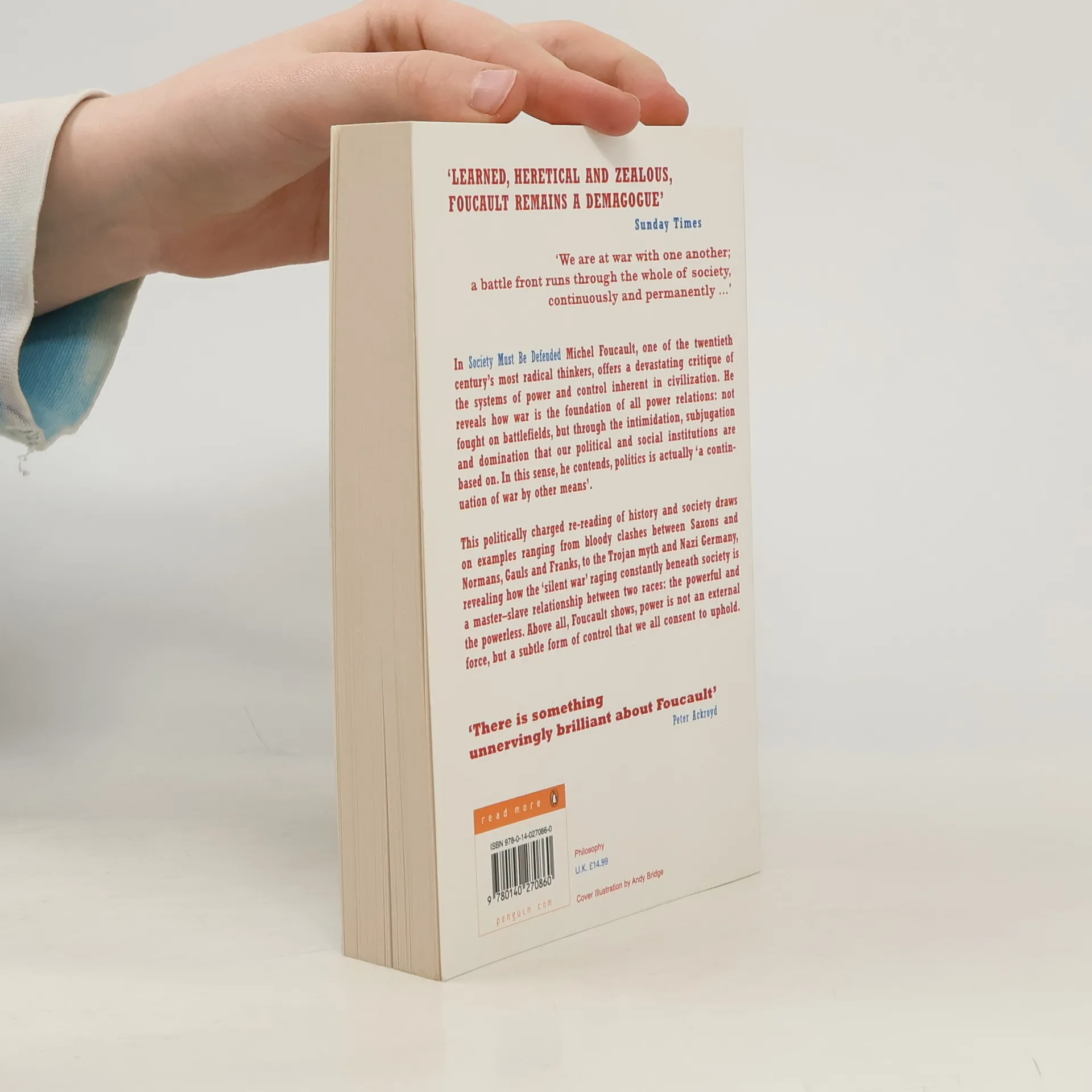 This volume is a full transcript of the lectures given by Foucault in 1975-76. The main theme of the lectures is the contention that war can be used to analyze power relations. The book is coloured with historical examples, drawn from the early modern period in both England and France.