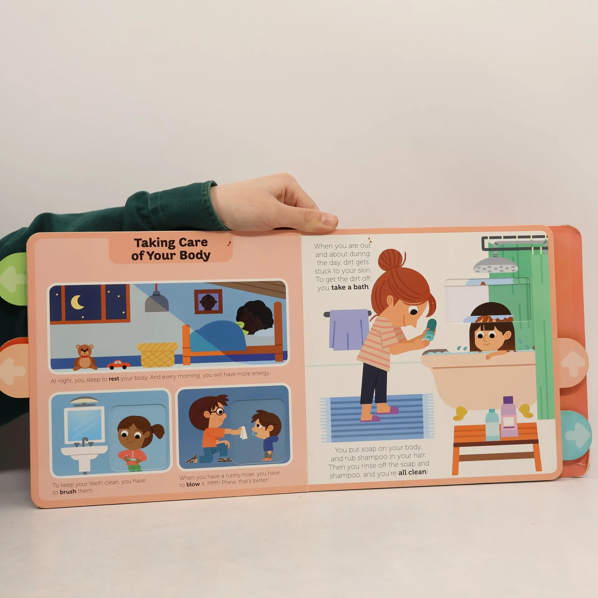 Big, sturdy tabs to push and pull make for great learning fun in this brand-new nonfiction series. Preschool children learn how special their bodies are in this innovative format, featuring three pull-tabs on each spread. Pull a tab to see how to take care of your body or what our five senses are, and push a tab to take a close look at an X-ray of a skeleton! With just the right amount of age-appropriate information, Body is the perfect title to add to any young child's library of nonfiction books.