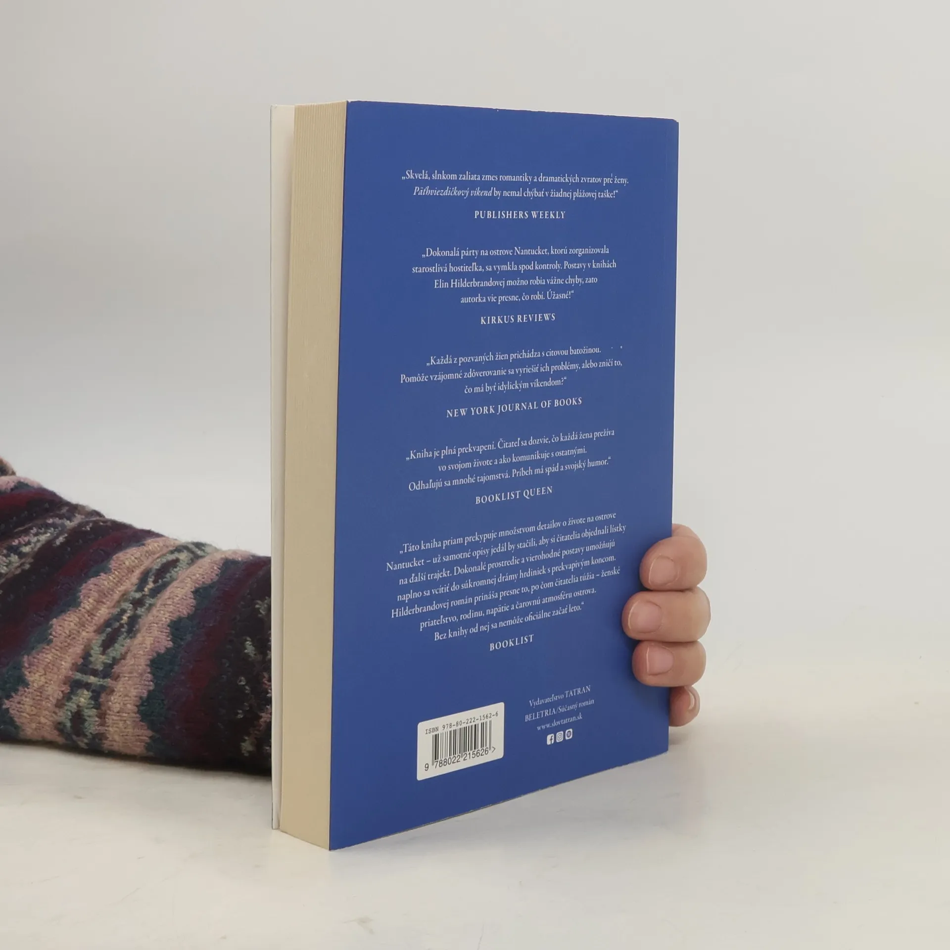 Päť žien. Päť tajomstiev. Výlet, ktorý všetko zmení. Vyberte sa s Elin Hilderbrandovou za znamenitou drámou, vzrušujúcimi tajomstvami a nezabudnuteľným víkendom. Život Hollis Shawovej je na prvý pohľad dokonalý. Je autorkou obľúbeného blogu o jedle, má vysnívaného manžela kardiochirurgaMatthewa a nádhernú dcéru. Keď však Matthew zahynie pri autonehode, Hollisin život sa začne postupne rozpadať. Keď sa dozvie o takzvanom Päťhviezdičkovom víkende – stretnutí najlepších priateliek z každej životnej etapy –, znie to ako ideálna príležitosť opäť sa postaviť na nohy. No pobyt na Nantuckette so štyrmi veľmi odlišnými ženami, z ktorých každá bojuje s vlastnými problémami, nemusí byť idylickým únikom, aký si predstavuje. Ako medzi nimi rastie napätie, odhaľujú sa tajomstvá a ožívajú staré emócie, Hollis si uvedomí, že tento víkend všetko zmení Prekvapivý a podmanivý príbeh o priateľstve, láske a sebapoznaní od celosvetovo najpredávanejšej kráľovnej plážového čítania.