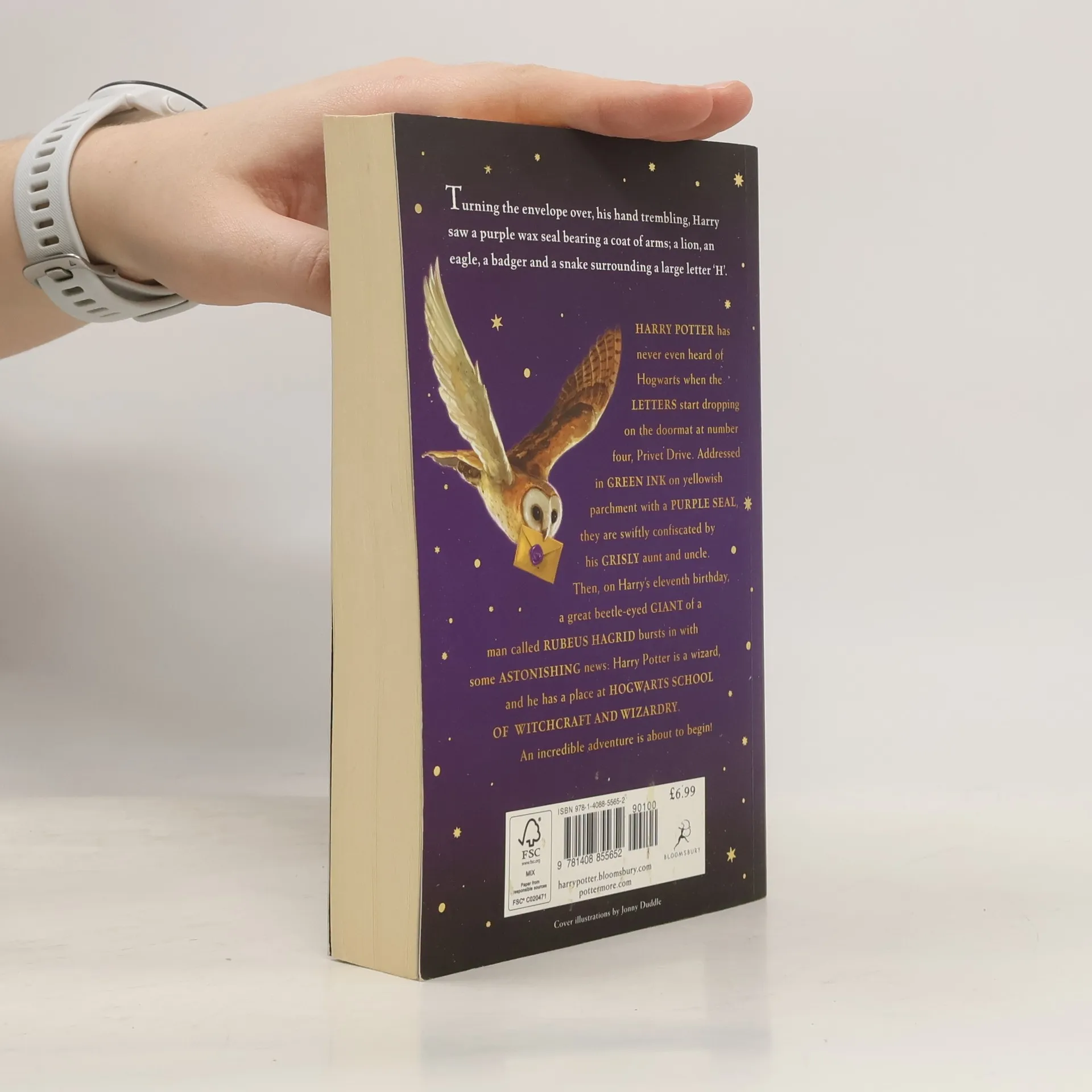 Harry Potter has never even heard of Hogwarts when the letters start dropping on the doormat at number four, Privet Drive. Addressed in green ink on yellowish parchment with a purple seal, they are swiftly confiscated by his grisly aunt and uncle. Then, on Harry's eleventh birthday, a great beetle-eyed giant of a man called Rubeus Hagrid bursts in with some astonishing news: Harry Potter is a wizard, and he has a place at Hogwarts School of Witchcraft and Wizardry. An incredible adventure is about to begin!These new editions of the classic and internationally bestselling, multi-award-winning series feature instantly pick-up-able new jackets by Jonny Duddle, with huge child appeal, to bring Harry Potter to the next generation of readers. It's time to PASS THE MAGIC ON .