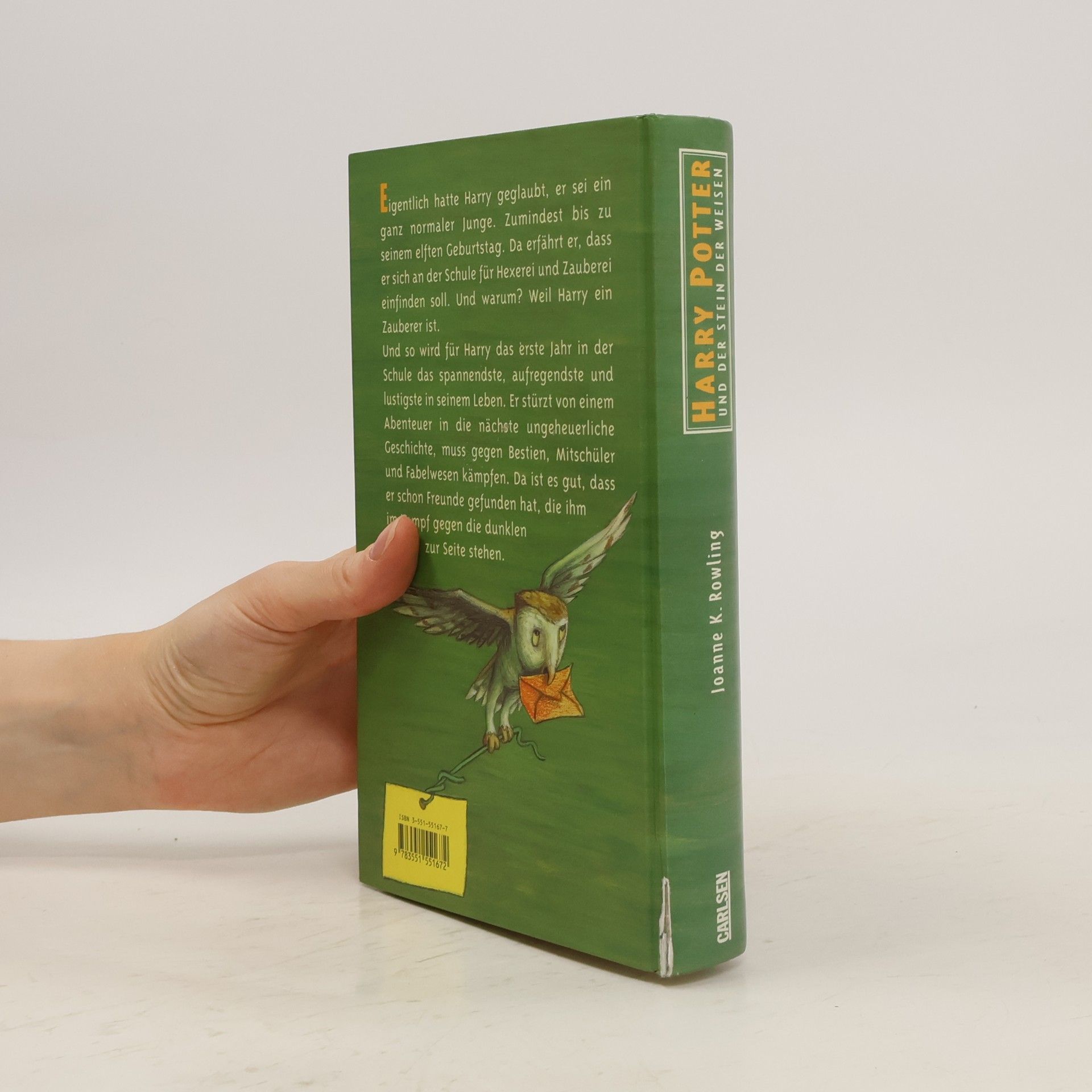 Bis zu seinem elften Geburtstag glaubt Harry, er sei ein ganz normaler Junge. Doch dann erfährt er, dass er sich an der Schule für Hexerei und Zauberei einfinden soll – denn er ist ein Zauberer! In Hogwarts stürzt Harry von einem Abenteuer ins nächste und muss gegen Bestien, Mitschüler und Fabelwesen kämpfen. Da ist es gut, dass er schon Freunde gefunden hat, die ihm im Kampf gegen die dunklen Mächte zur Seite stehen. Dies ist der erste Band der international erfolgreichen Harry-Potter-Serie, die Generationen geprägt hat. Alle Bände der Serie: Harry Potter und der Stein der WeisenHarry Potter und die Kammer des SchreckensHarry Potter und der Gefangene von AskabanHarry Potter und der FeuerkelchHarry Potter und der Orden des PhönixHarry Potter und der HalbblutprinzHarry Potter und die Heiligtümer des Todes Die Harry-Potter-Serie ist abgeschlossen.