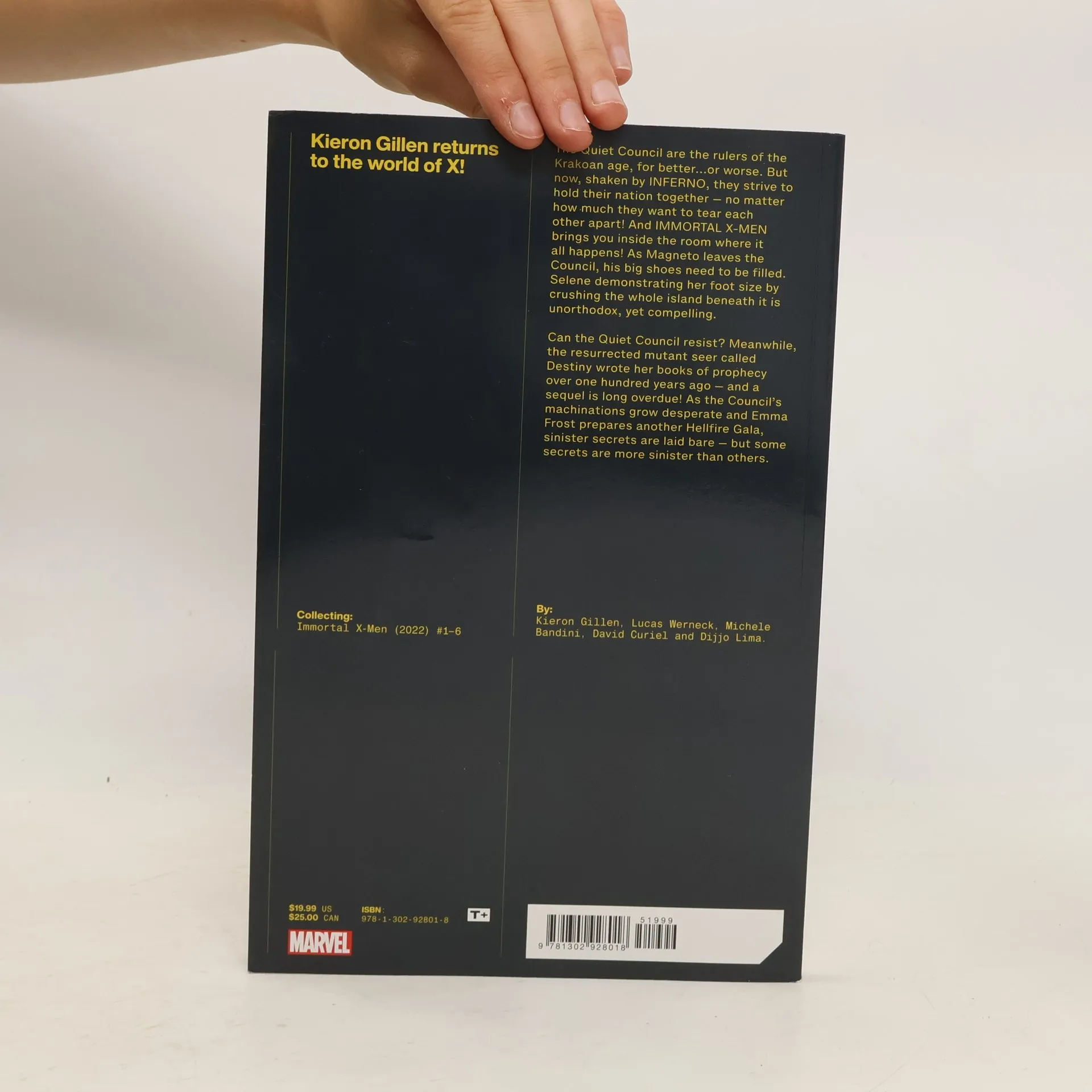 "The Quiet Council are the rulers of the Krakoan age, for better... or worse. But now, shaken by INFERNO, they strive to hold their nation together -- no matter how much they want to tear each other apart! At last, IMMORTAL X-MEN welcomes you into the room where it all happens! Magneto has left the Council, and his big shoes need to be filled. Selene demonstrating her foot size by crushing the whole island beneath it is unorthodox, yet compelling. Can the Quiet Council resist? Meanwhile, the resurrected mutant seer called Destiny wrote her books of prophecy over one hundred years ago... and a sequel is long overdue! As the Council's machinations grow increasingly desperate, sinister secrets about Krakoa will be laid bare... but some secrets are more sinister than others"--Provided by publisher.