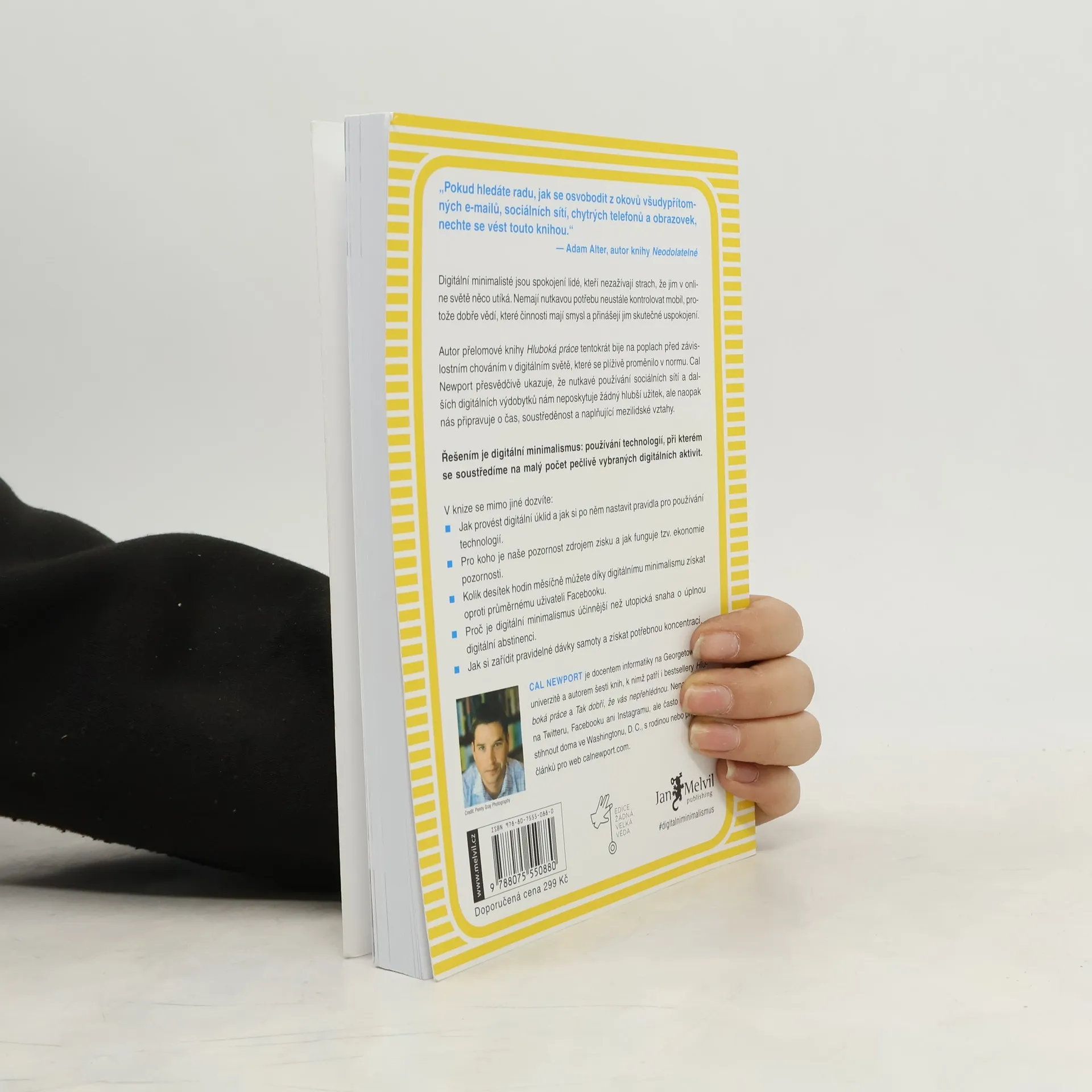 Zkroťte návykové technologie a získejte zpět svůj čas a koncentraci. Digitální minimalisté jsou spokojení lidé, kteří nezažívají strach, že jim v online světě něco utíká. Nemají nutkavou potřebu neustále kontrolovat mobil, protože dobře vědí, které činnosti mají smysl a přinášejí jim skutečné uspokojení. Autor přelomové knihy Hluboká práce tentokrát bije na poplach před závislostním chováním v digitálním světě, které se plíživě proměnilo v normu. Cal Newport přesvědčivě ukazuje, že nutkavé používání sociálních sítí a dalších digitálních výdobytků nám neposkytuje žádný hlubší užitek, ale naopak nás připravuje o čas, soustředěnost a naplňující mezilidské vztahy. Řešením je digitální minimalismus: používání technologií, při kterém se soustředíme na malý počet pečlivě vybraných digitálních aktivit. V knize se mimo jiné dozvíte: • Jak provést digitální úklid a jak si po něm nastavit pravidla pro používání technologií. • Pro koho je naše pozornost zdrojem zisku a jak funguje tzv. ekonomie pozornosti. • Kolik desítek hodin měsíčně můžete díky digitálnímu minimalismu získat oproti průměrnému uživateli Facebooku. • Proč je digitální minimalismus účinnější než utopická snaha o úplnou digitální abstinenci. • Jak si zařídit pravidelné dávky samoty a získat potřebnou koncentraci.