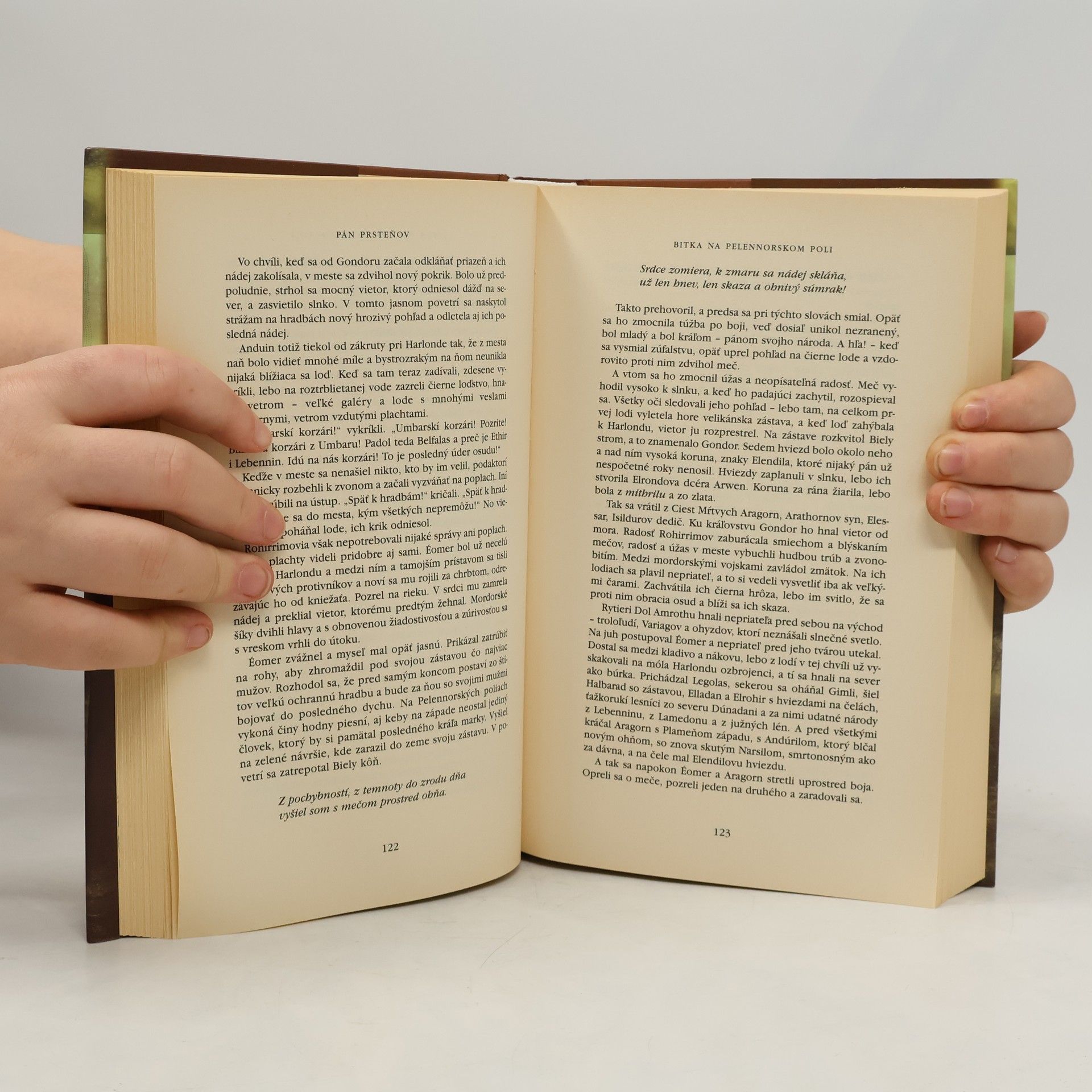 Pokračovanie úspešnej trilógie Pán Prsteňov, v ktorom sa zavŕši príbeh putovania hobita Froda k Puklinám osudu a vojny, ktorá zavládla v Stredozemi.