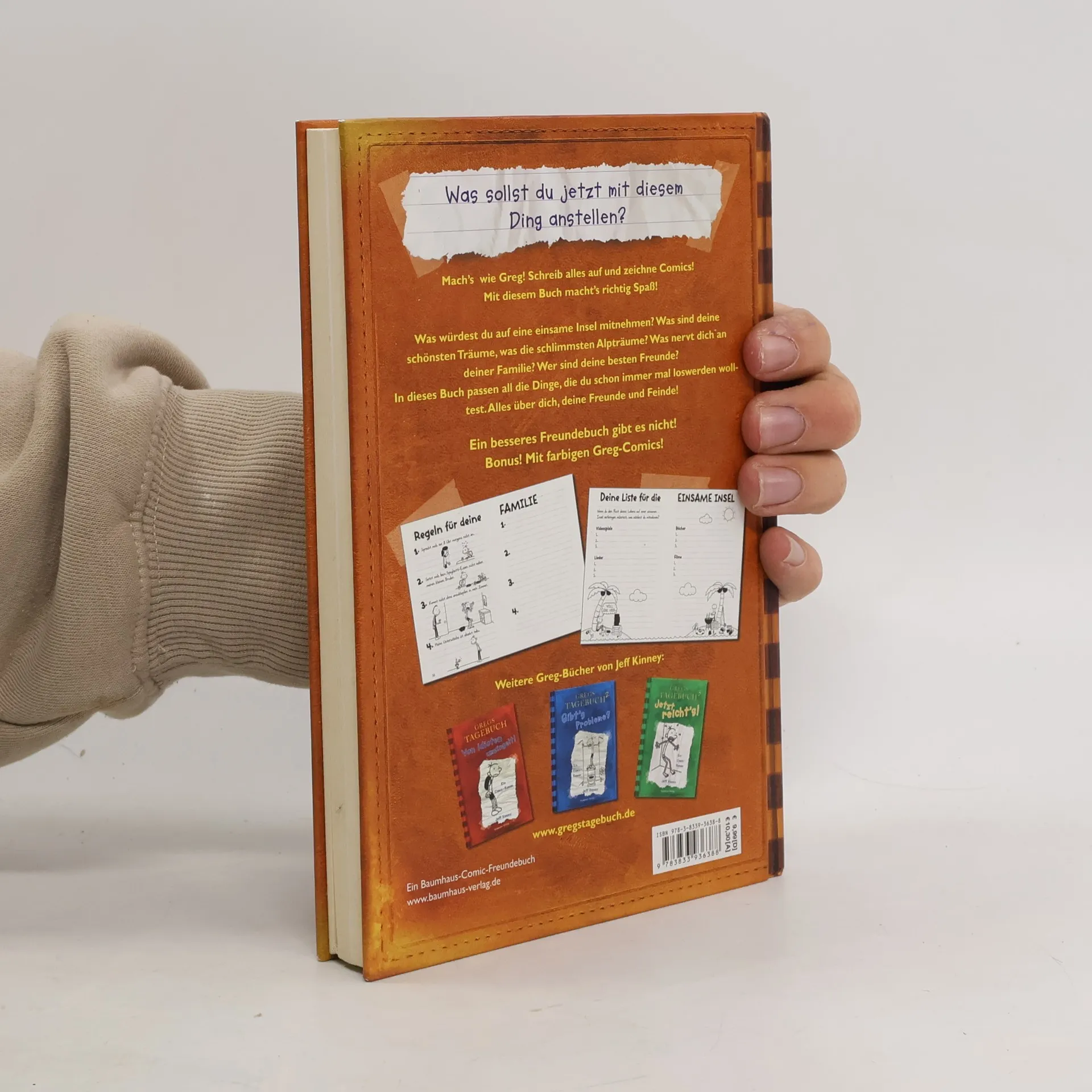 In diesem Greg-Comic-Freundebuch können Kinder auf sehr witzige Art ihre Lebensgefühle aufschreiben oder -zeichnen und ihre Freunde hineinschreiben bzw. -zeichnen lassen. Besser kann ein Buch Freunde nicht verbinden! Aus dem Inhalt: Tagebuchseiten und interaktiver Teil, allerbeste Träume, schlimmste Erfahrungen, wichtigste Familienregeln (auch die, die nerven), tollste Geheimnisse (psst!), größter Ärger (obwohl man nicht schuld war), Comics zum Weiterzeichnen und und und - Außerdem als Bonus: die gesammelten Cartoons von Greg und seinem Freund Rupert. Fesselndes Freunde- und Activity-Buch zur Erfolgsserie Gregs Tagebuch - für alle Jungs und Mädels, die genau so sein und schreiben wollen wie Greg. Klasse Geschenk für alle Greg-Fans! Gregs Tagebuch hat sogar lesefaule Jungs und Mädchen begeistert. Mit diesem Buch erleben sie, wie spannend und witzig es sein kann, nicht nur zu lesen, sondern auch selbst zu schreiben und zu zeichnen. Nachdenken über sich und das Leben garantiert!