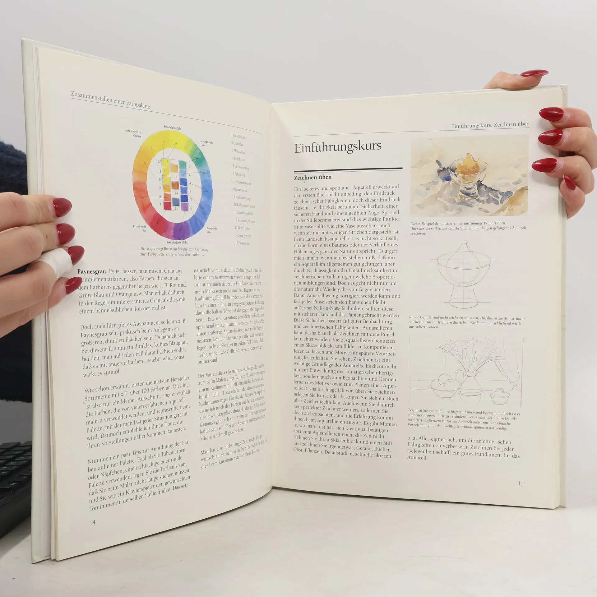 Wichtige Stationen auf dem Weg zu einem gelungenen Stilleben oder Blumenaquarell sind genaues Beobachten und Betrachten des Motives, die Auseinandersetzung mit der Komposition und der Harmonie der Farben sowie der gezielte Einsatz der verschiedenen aquarellistischen Technik. All dies wird in diesem Buch vermittelt