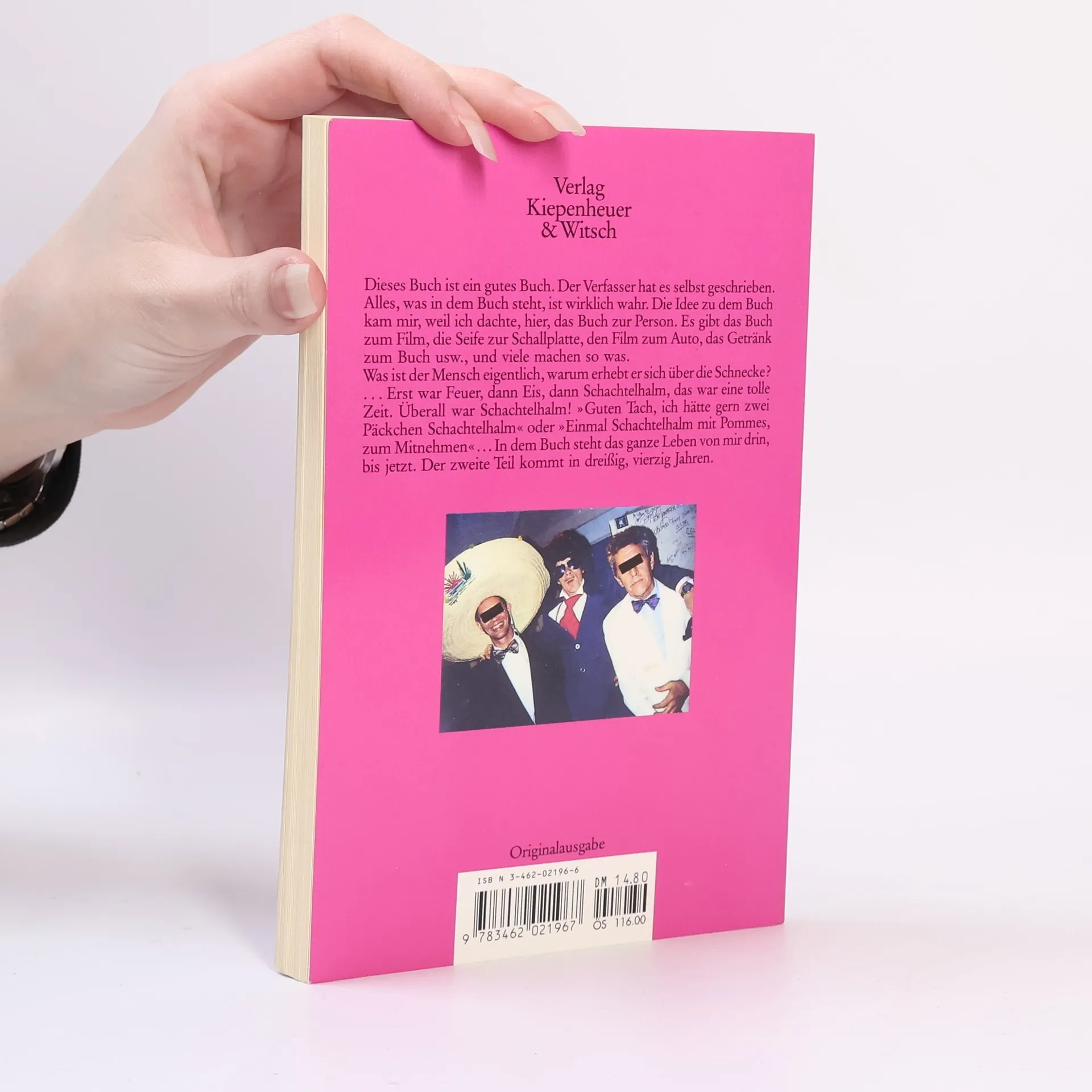 Es ist selten geworden, dass den Kritikern in den großen und kleinen Feuilletons die Worte ausgehen oder durchgehen. Als 1991 ein Mann namens Helge Schneider auf kleinen und großen Bühnen von Mühlheim a.d. Ruhr auf einem Triumphzug durch Provinz und Metropolen begann, wusste niemand, wie dieses Phänomen beschrieben werden kö Kabarett? Jazz? Entertainment? Ein-(Drei-)Mann-Show? Schlagerparodie? Totaler Unsinn, höherer Sinn? (also Surrealismus?) Die Selbstbezeichnung als »singende Herrentorte« führte da auch nicht weiter... Nur eins war Wer Helge Schneider und seine Hardcoreband (der ewig sechzigjährige, greise Schlagzeuger Peter Thomas und Buddy Casino aus Las Vegas mit Sombrero) zwei Stunden erlebt, lacht zwei Stunden, ein Lachen zwischen Wahnsinn und bösem Stammtisch, schwer zu beschreiben auch dieses Lachen! Damit nun alle Rätsel um diesen Mann gelöst werden, hat er zur Feder gegriffen und – was sonst – seine Autobiographie geschrieben, wenn auch erst den ersten Teil. Er selbst sagt »In dem Buch von Helge Schneider steht das ganze Leben von ihm drin, bis jetzt. Der zweite Teil kommt in dreißig, vierzig Jahren.«