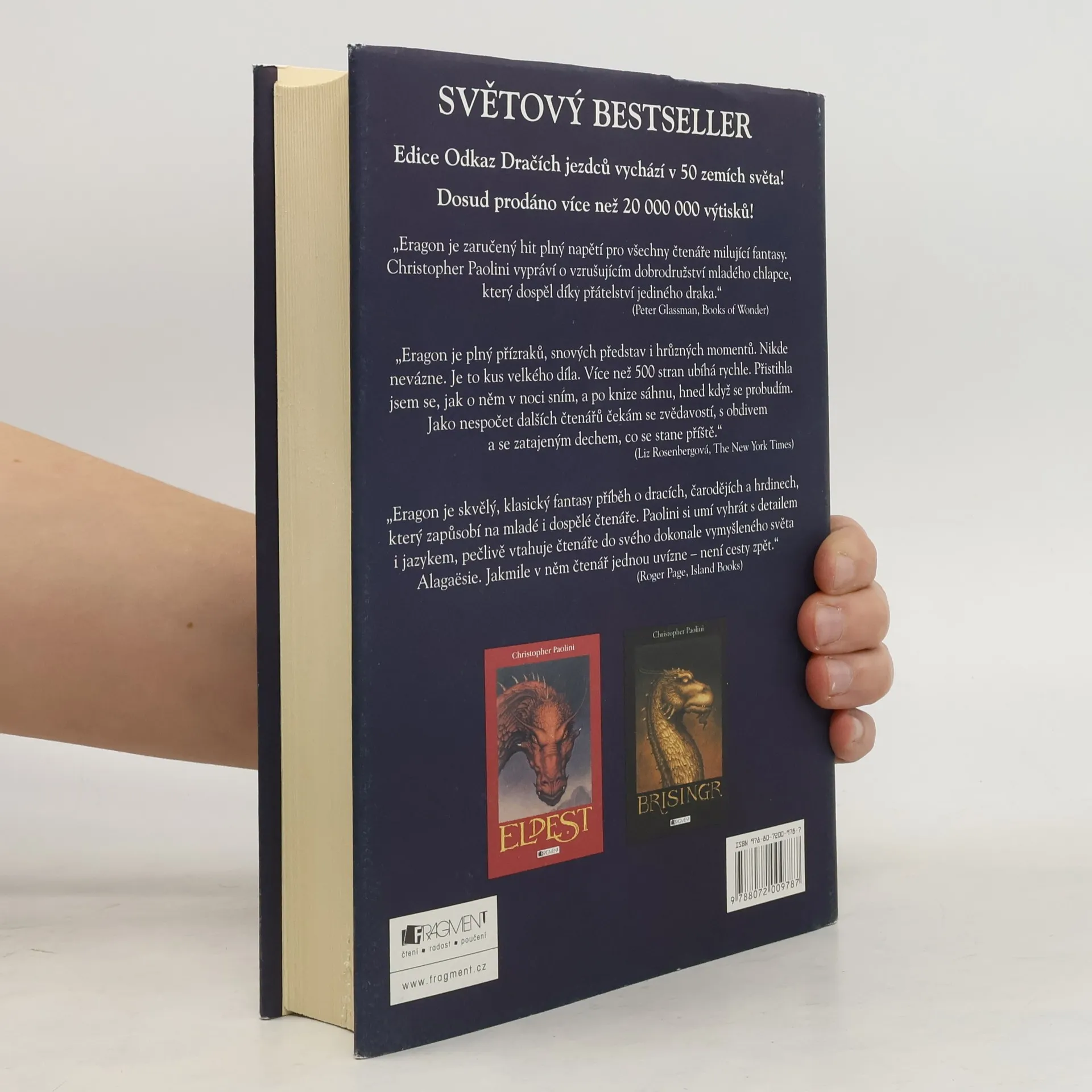 Fantasy bestseller Eragon z pera patnáctiletého Christophera Paoliniho, který nadchl miliony čtenářů po celém světě. Vypráví příběh chudého farmářského chlapce, který najde v Dračích horách modrý kámen, z něhož se vyklube dračí mládě – Safira. Spolu se vydají na nebezpečnou cestu královstvím ovládaným králem, jehož zlo nezná mezí. Dokáže Eragon naplnit své předurčení a převzít břímě legendárních Dračích jezdců? Osud království možná leží v jeho rukou ... První díl trilogie Odkaz Dračích jezdců.
