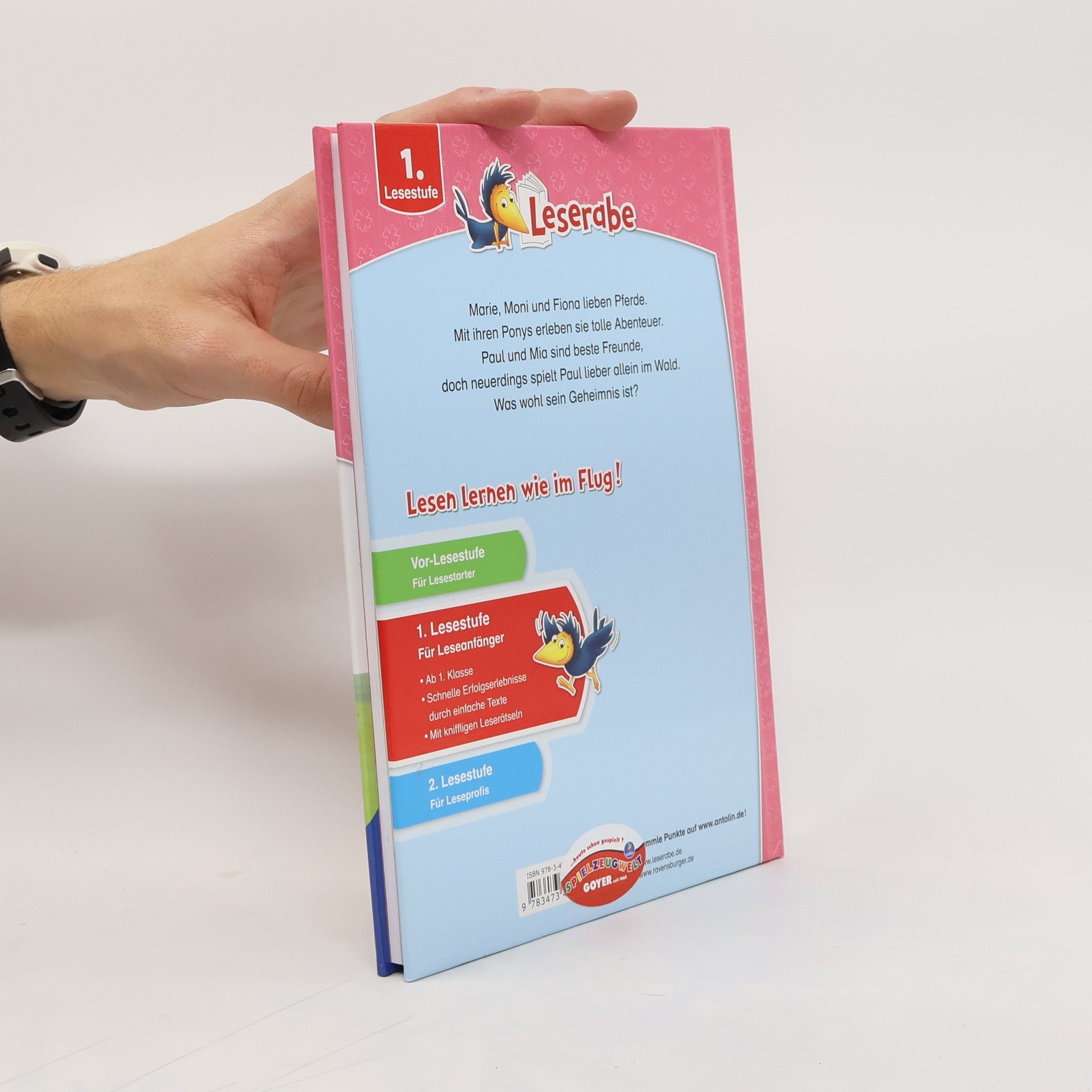 Marie wünscht sich unbedingt ein Pony, doch Mama und Papa erlauben ihr bloß einen Hund. Die Eltern staunen nicht schlecht, als Marie am nächsten Tag mit einem ganz besonderen Hund nach Hause kommt. Leon verhält sich in letzter Zeit komisch. Schnell ist Mia klar: Leon hat ein Geheimnis! Ob er es seiner besten Freundin verrät? Zwei Leseraben-Geschichten in einem Band mit großer Fibelschrift und einfachem Wortschatz, die sich perfekt zum Lesenlernen eignen. Lesen lernen mit dem Ravensburger LeserabenDie 1. Lesestufe spricht Kinder an, die mit dem Leselern-Prozess begonnen haben, und bietet ideale Bücher für Leseanfänger. Kurze Textabschnitte, einfacher Wortschatz sowie die extragroße Fibelschrift erleichtern Kindern das Lesen. Leserätsel für Leseanfänger und spannende Geschichten machen das Lesenlernen zu einem echten Vergnügen.