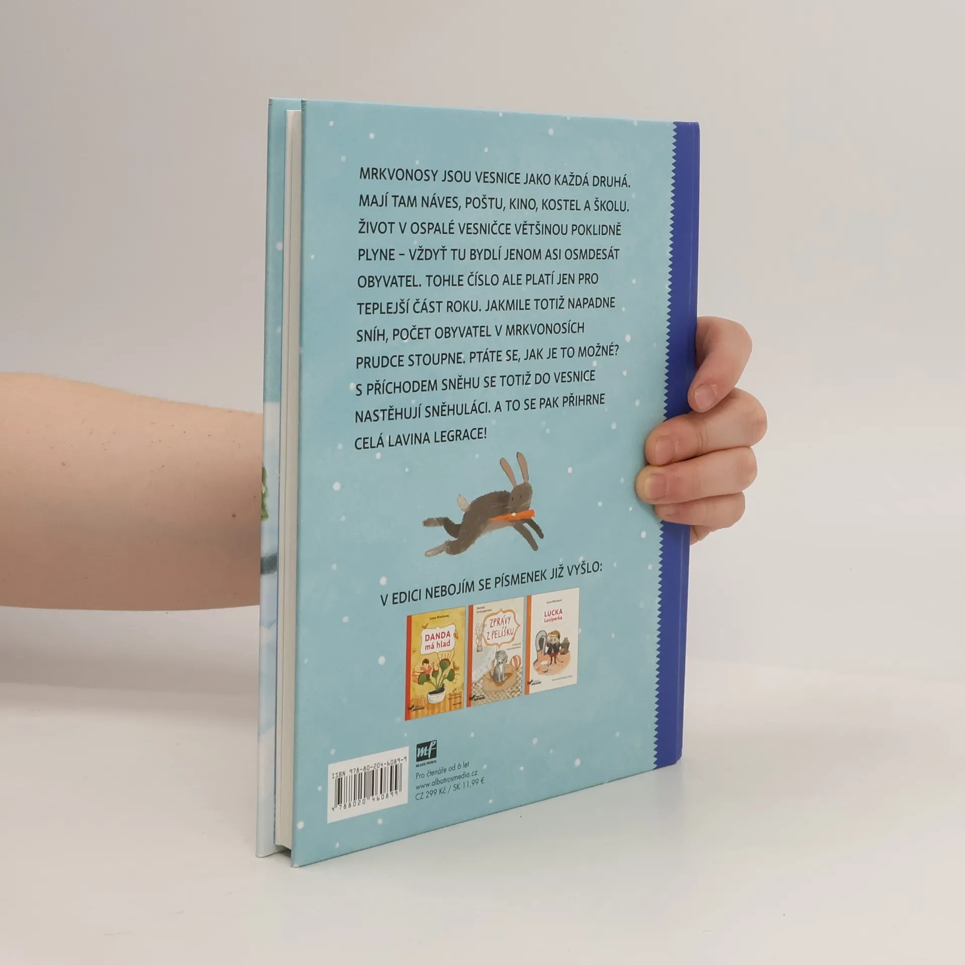 Mrkvonosy jsou vesnice jako každá druhá. Mají tam náves, poštu, kino, kostel a školu. Život v ospalé vesničce většinou poklidně plyne – vždyť tu bydlí jenom asi osmdesát obyvatel. Tohle číslo ale platí jen pro teplejší část roku. Jakmile totiž napadne sníh, počet obyvatel v Mrkvonosích prudce stoupne. Ptáte se, jak je to možné? S příchodem sněhu se totiž do vesnice nastěhují sněhuláci. A to se pak přihrne celá lavina legrace!