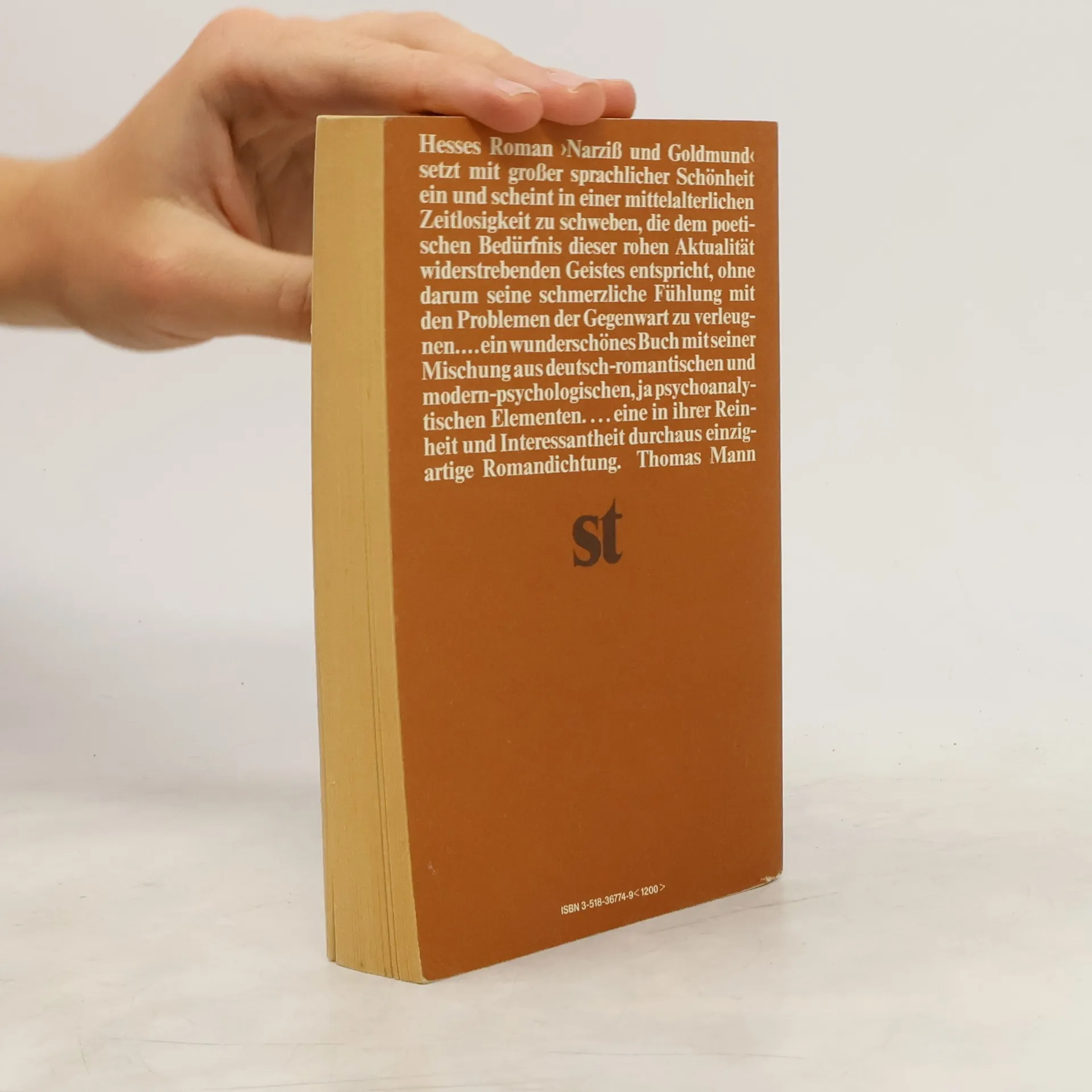 "Hesses Roman "Narziß und Goldmund" setzt mit großer sprachlicher Schönheit ein und scheint in einer mittelalterlichen Zeitlosigkeit zu schweben, die dem poetischen Bedürfnis dieses der rohen Aktualität widerstrebenden Geistes entspricht, ohne darum seine schmerzliche Fühlung mit den Problemen der Gegenwart zu verleugnen...ein wunderschönes Buch mit seiner Mischung aus deutsch-romantischen und modern-psychologischen, ja psychoanalytischen Elementen...eine in ihrer Reinheit und Interessantheit durchaus einzigartige Romandichtung." Thomas Mann