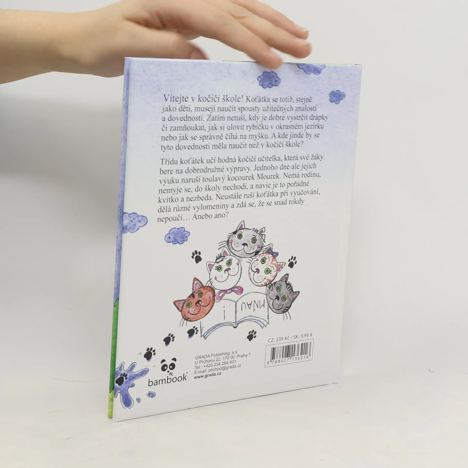 Vítejte v kočičí škole! Koťátka se totiž, stejně jako děti, musejí naučit spousty užitečných znalostí a dovedností. Zatím netuší, kdy je dobré vystrčit drápky či zamňoukat, jak si ulovit rybičku v okrasném jezírku nebo jak se správně číhá na myšku. A kde jinde by se tyto dovednosti měla naučit než v kočičí škole? Třídu koťátek učí hodná kočičí učitelka, která své žáky bere na dobrodružné výpravy. Jednoho dne ale jejich výuku naruší toulavý kocourek Mourek. Nemá rodinu, nemyje se, do školy nechodí, a navíc je to pořádné kvítko a nezbeda. Neustále ruší koťátka při vyučování, dělá různé vylomeniny a zdá se, že se snad nikdy nepoučí… Anebo ano?
