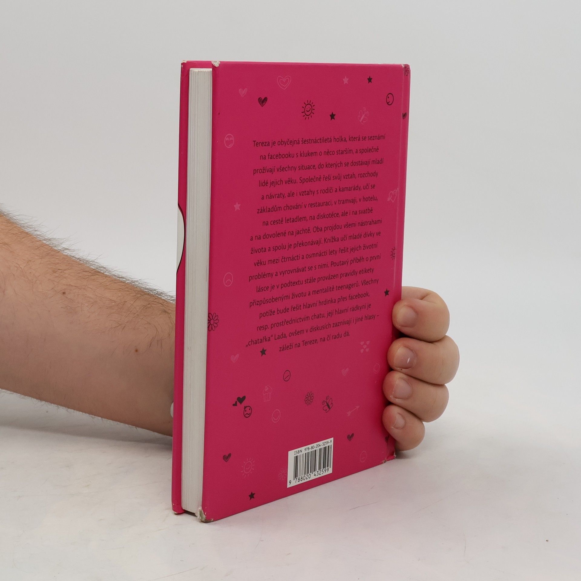 Tereza je obyčejná šestnáctiletá holka, která se seznámí na facebooku s klukem o něco starším, a společně prožívají všechny situace, do kterých se dostávají mladí lidé jejich věku. Společně řeší svůj vztah, rozchody a návraty, ale i chování k rodičům, ke kamarádům, učí se základům chování v restauraci, v tramvaji, v hotelu, na cestě letadlem, na diskotéce, ale i na svatbě a na společné dovolené na jachtě. Oba projdou všemi nástrahami života a společně se s nimi vyrovnávají. Knížka učí mladé dívky ve věku mezi čtrnácti a osmnácti lety řešit jejich životní problémy a vyrovnávat se s nimi. Poutavý příběh o první lásce je v podtextu stále provázen pravidly etikety přizpůsobenými životu a mentalitě teenagerů. Všechny potíže bude řešit hlavní hrdinka přes facebook, resp. prostřednictvím chatu, její hlavní rádkyní je „chatařka“ Lada, ovšem v diskusích zaznívají i jiné hlasy – záleží na Tereze, na čí radu dá.