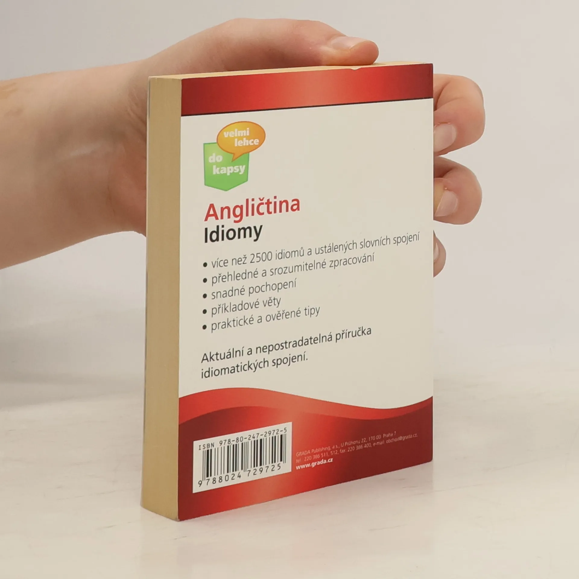 Idiom je ustálené spojení několika slov s určitým významem, který neodpovídá prostému překladu jednotlivých částí. Idiomy jsou pro všechny studenky angličtiny jednou z nejobtížnějších věcí, které se musí naučit. V této knize kapesního formátu je celkový přehled nejčastěji používaných idiomů, se kterými se tak můžete podrobně seznámit a procvičovat si je kdykoli budete mít čas. Aktuální a praktická příručka zaměřená na základní řečové situace prochází okruhy, se kterými se student cizího jazyka nejběžněji setkává a které jsou zdrojem častých problémů. Přehledné uspořádání idiomatických spojení britské i americké angličtiny spolu s jednoduchými a srozumitelnými poučkami pomáhají snadnému osvojení daných obratů. Výborným doplňkem jsou četné příklady ze současné jazykové praxe, na jejichž základě si rozšíříte slovní zásobu a obohatíte své vyjadřovací schopnosti.