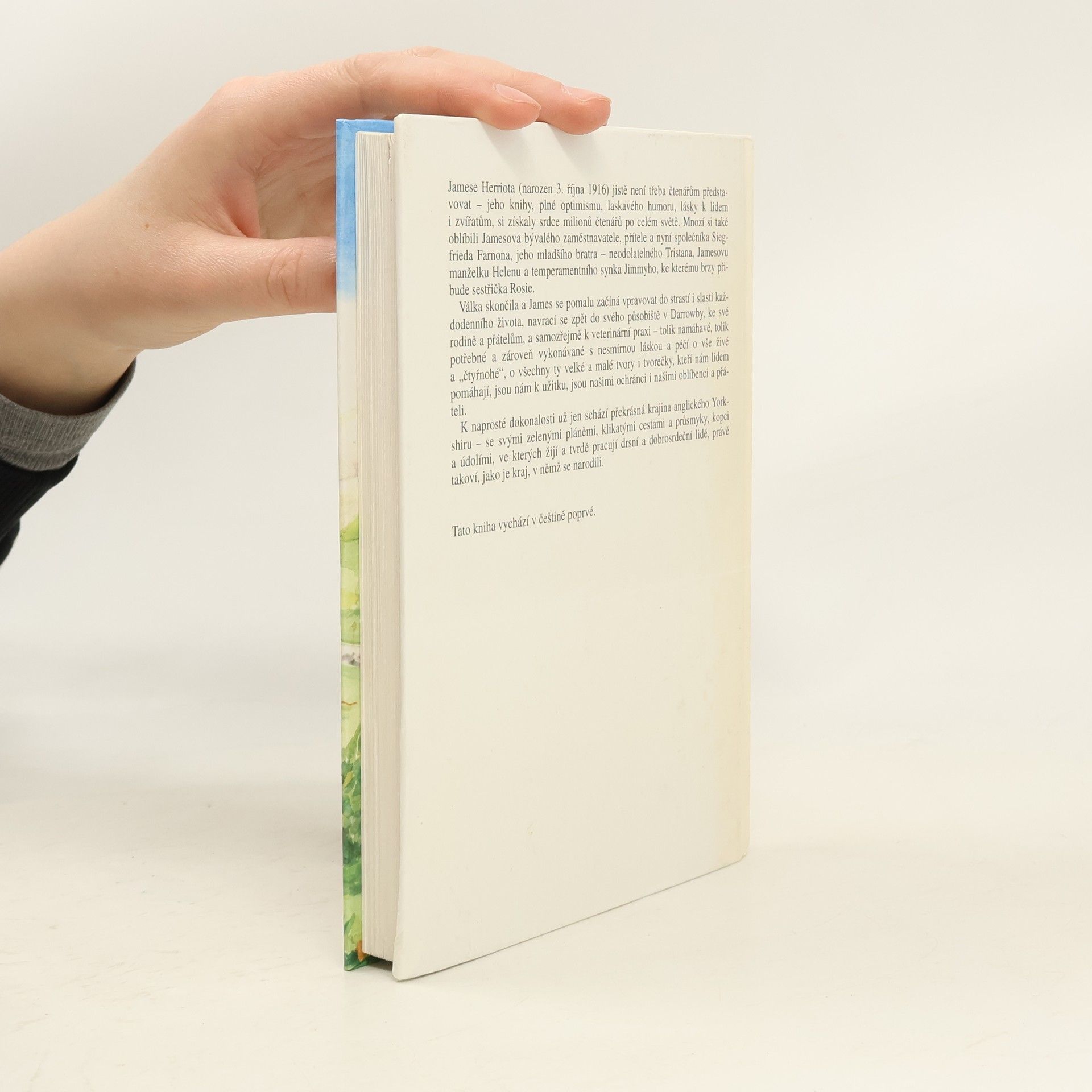 Jamese Herriota jistě není třeba čtenářům představovat - jeho knihy plné optimismu, laskavého humoru a lásky k lidem i zvířatům si získaly srdce miliónů čtenářů po celém světě. Mnozí si také oblíbili Jamesova bývalého zaměstnavatele, přítele a nyní společníka Siegfrieda Farnona, jeho mladšího bratra - neodolatelného Tristana, Jamesovu manželku Helenu a temperamentního synka Jimmyho, ke kterému brzy přibude sestřička Rosie. Druhá světová válka skončila a James se pomalu začíná vpravovat do strastí i slastí každodenního života, navrací se zpět do svého působiště v Darrowby, ke své rodině a přátelům, a samozřejmě k veterinární praxi - tolik namáhavé, tolik potřebné a zároveň vykonávané s nesmírnou láskou a péčí o vše živé a "čtyřnohé", o všechny ty velké a malé tvory i tvorečky, kteří nám lidem pomáhají, jsou nám k užitku, jsou našimi ochránci i našimi oblíbenci a přáteli. K naprosté dokonalosti už schází jen překrásná krajina anglického Yorkshiru - se svými zelenými pláněmi, klikatými cestami a průsmyky, kopci a údolími, ve kterých žijí a tvrdě pracují drsní a dobrosrdeční lidé, právě takoví, jako je kraj, v němž se narodili. Vydavatel: Ametyst, Praha.... celý text