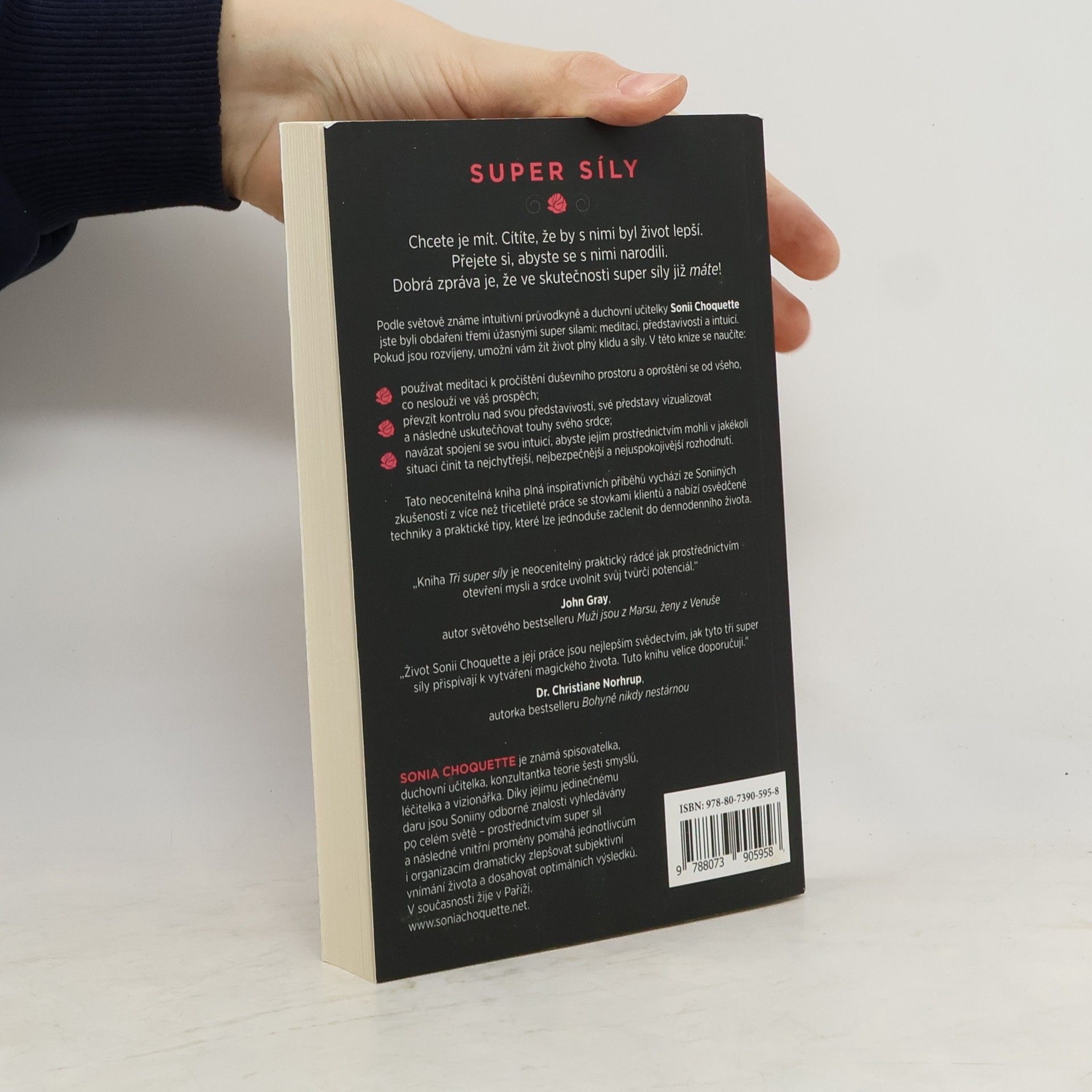 Meditace, představivost a intuice. Super síly. Chcete je. Cítíte, že s nimi bude život lepší. Přejete si, abyste se s nimi narodili. Dobrou zprávou je, že VY máte super sílu! Sonia Choquette, autorka bestsellerů, světoznámá intuitivní průvodkyně a duchovní učitelka představuje tři mimořádné super síly: meditací, představivost a intuicí. S jejich pomocí můžete žít klidnější a hodnotnější život. V této knize vás Sonia naučí, jak: - Můžete využít meditaci k vyčistění duševního prostoru a oprostit se od všeho, co vás zbytečně zatěžuje - Posílit svou představivost a využít ji k vybudování lepšího života. - Posílit svou intuici a využít ji k lepšímu rozhodování v důležitých životních situacích. Kniha je výsledkem autorčiných zkušeností z práce se stovkami klientů během tří desetiletí. Obsahuje osvědčené techniky a praktické tipy, které lze snadno zapracovat do vašeho každodenního života.