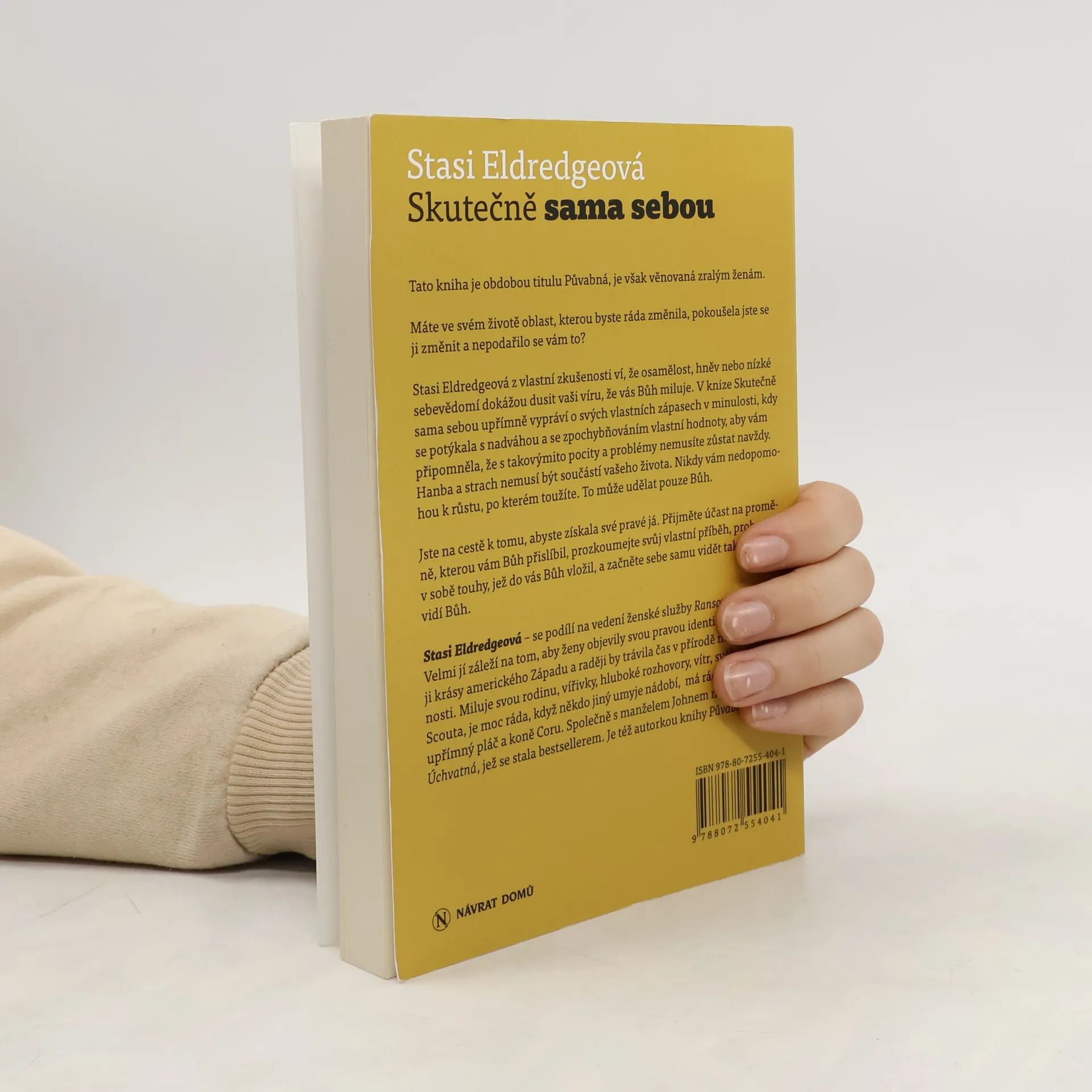 Tato kniha je obdobou titulu Půvabná, je však věnovaná zralým ženám. Máte ve svém životě oblast, kterou byste ráda změnila, pokoušela jste se ji změnit a nepodařilo se vám to? Stasi Eldredgeová z vlastní zkušenosti ví, že osamělost, hněv nebo nízké sebevědomí dokážou dusit vaši víru, že vás Bůh miluje. V knize Skutečně sama sebou upřímně vypráví o svých vlastních zápasech v minulosti, kdy se potýkala s nadváhou a se zpochybňováním vlastní hodnoty, aby vám připomněla, že s takovýmito pocity a problémy nemusíte zůstat navždy. Hanba a strach nemusí být součástí vašeho života. Nikdy vám nedopomohou k růstu, po kterém toužíte. To může udělat jenom Bůh. Jste na cestě k tomu, abyste získala své pravé já. Přijměte účast na proměně, kterou vám Bůh přislíbil, prozkoumejte svůj vlastní příběh, probuďte v sobě touhy, jež do vás Bůh vložil, a začněte sebe samu vidět tak, jak vás vidí Bůh.