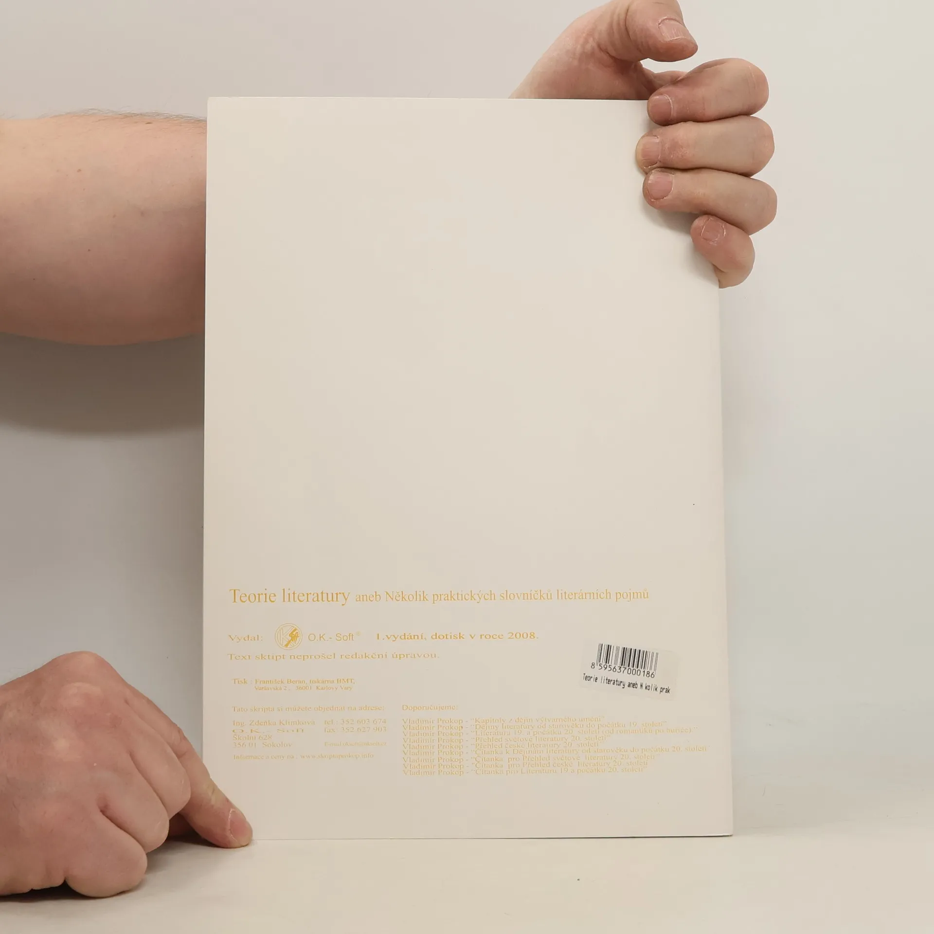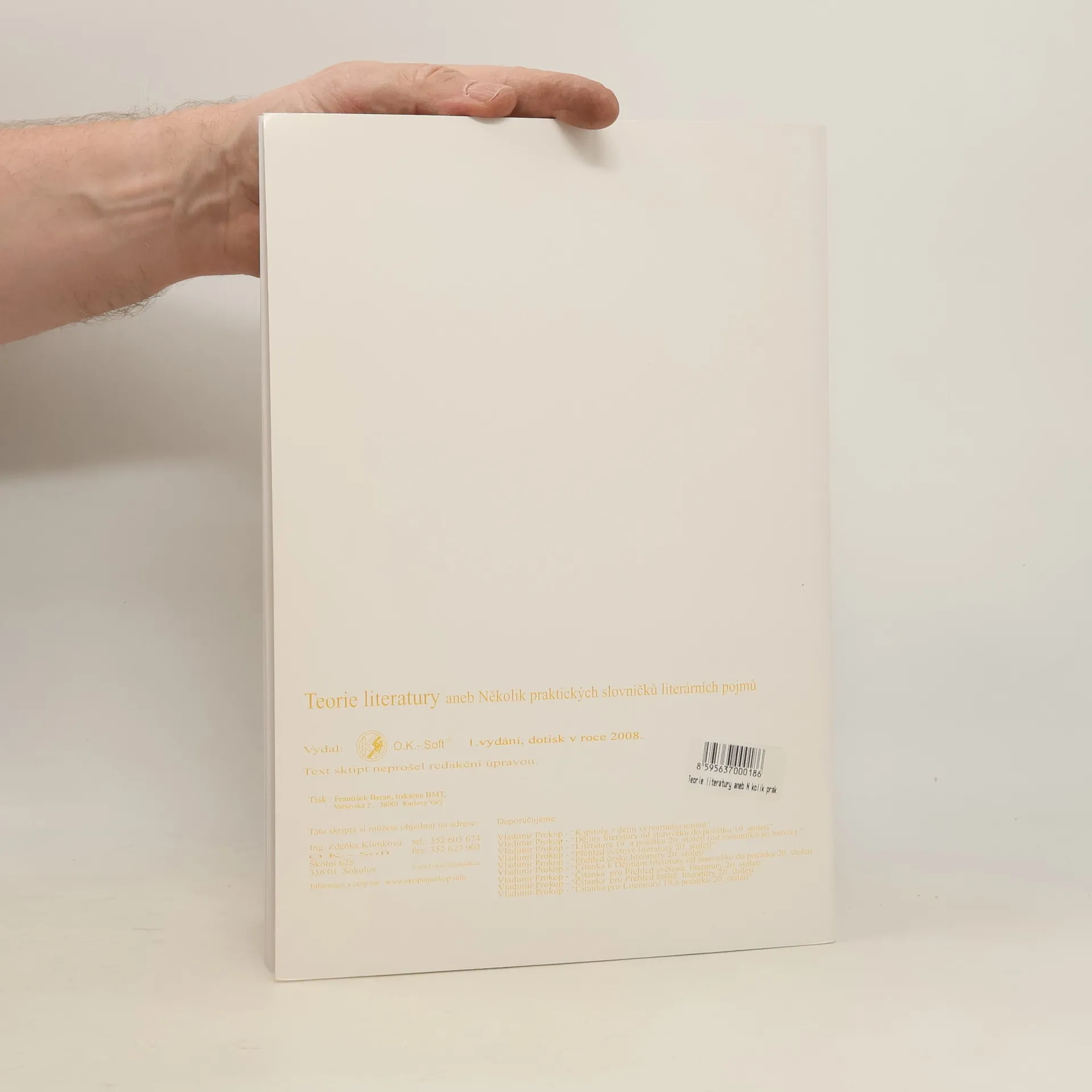 Stejně jako u předchozích titulů je i tentokrát autorem středoškolský učitel. Tato jedinečně koncipovaná skripta teorie literatury završuje cyklus publikací pro výuku na středních školách od Vladimíra Prokopa. Slovníčky umožňují rychlé a racionální studium nejen jednotlivých pojmů,ale rovněž celých tématických oblastí. Ocení studenti všech věkových kategorií - právě v tomto smyslu skripta zaplňují mezeru ve výuce literatury.